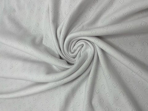 Ажурная рибана – трикотажное полотно, которое сочетает в себе эластичность, мягкость и изысканный внешний вид. Благодаря особой структуре и перфорации, ткань обладает высокой воздухопроницаемостью. Благодаря этим свойствам материал идеально подходит для пошива нижнего белья, пижам, домашних костюмов, маек и футболок, топов, детских платьев и комбинезонов, чепчиков, ползунков, боди, распашонок. Ткань очень мягкая, деликатная при касании с кожей и очень комфортна в ежедневной носке. Материал легко драпируется.
