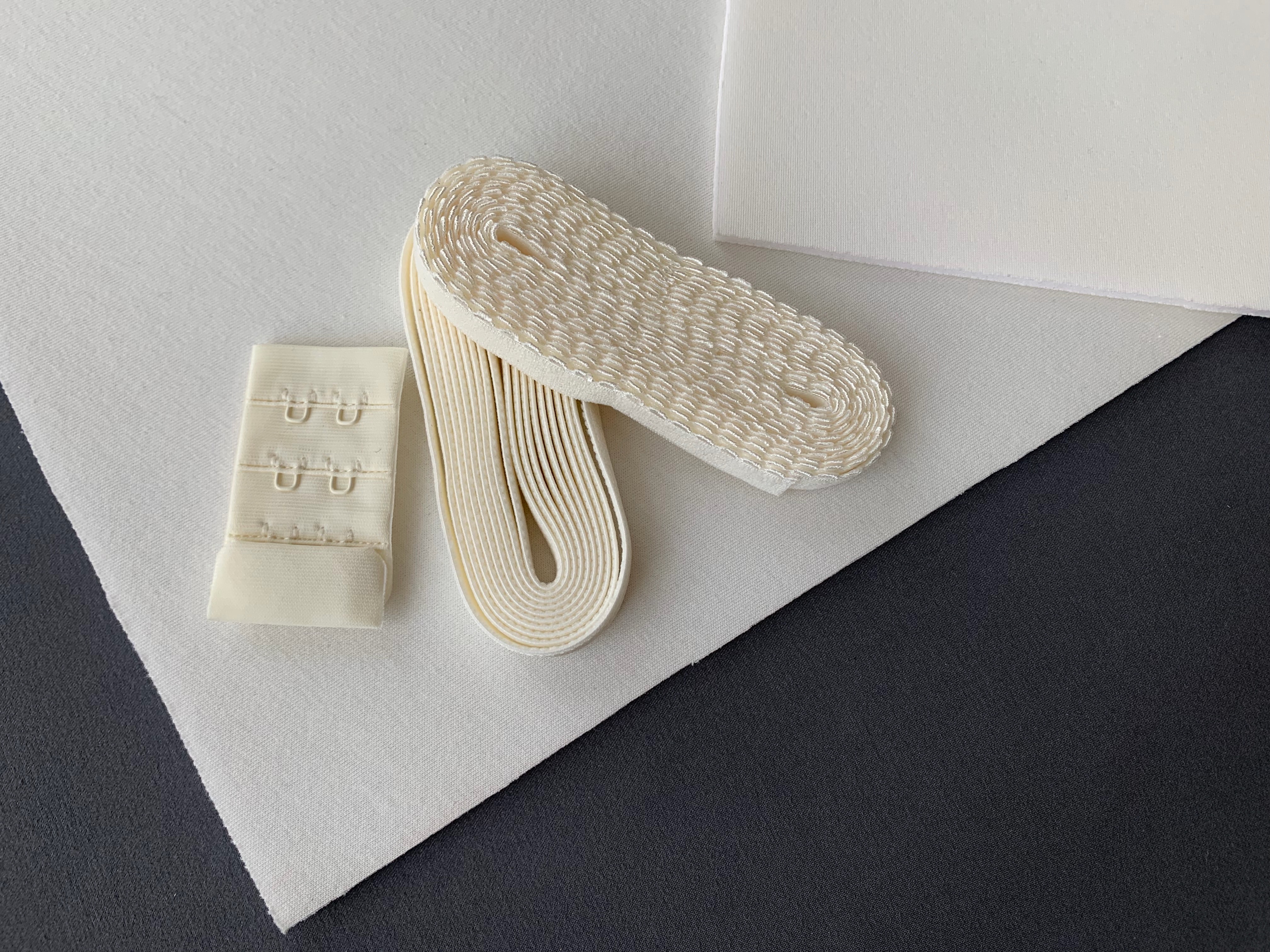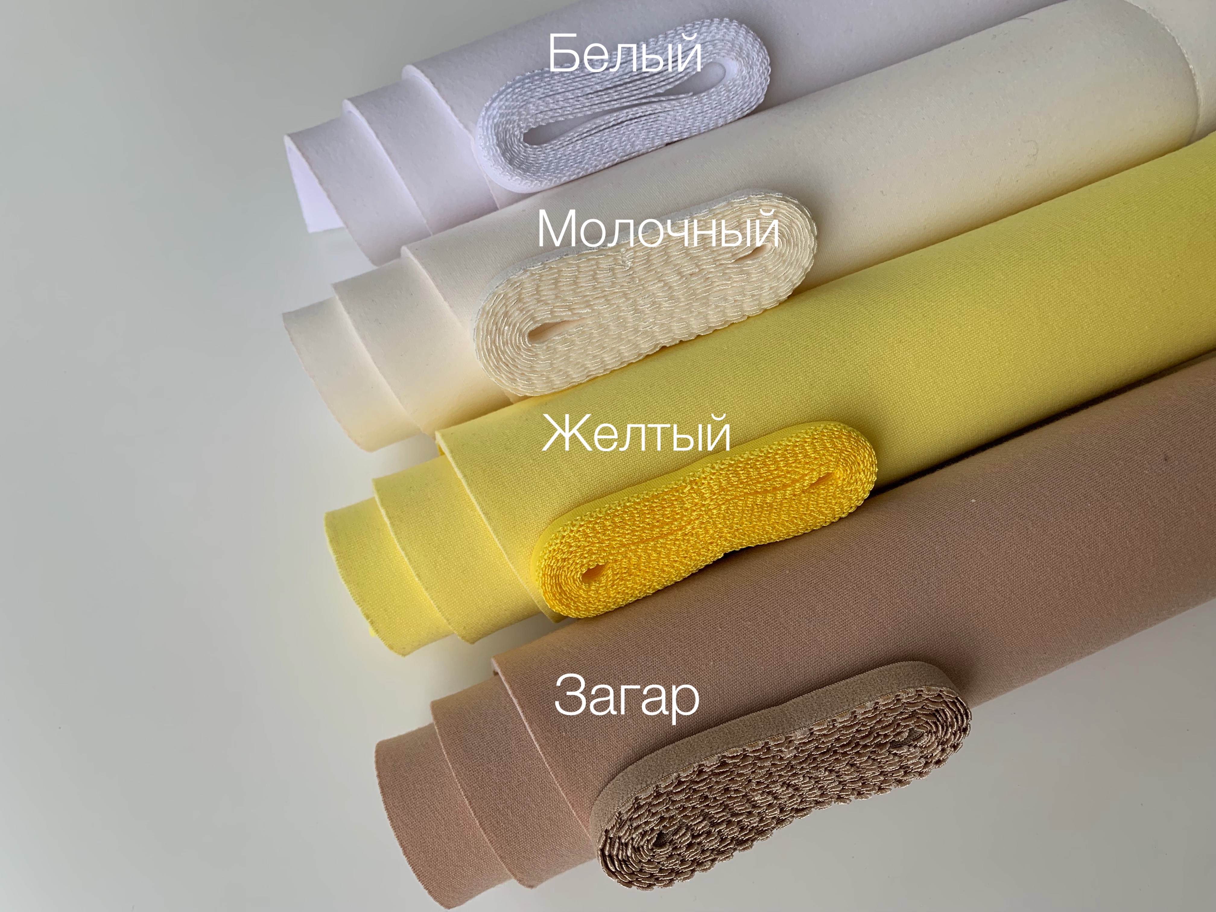 Бельевой поролон. Ламинирован с обеих сторон трикотажным полотном. С одной стороны 100% полиэстер, с другой 100% хлопок. Используется для пошива чашечек бюстгальтера. При транспортировке на сгибах могут появляться замины.