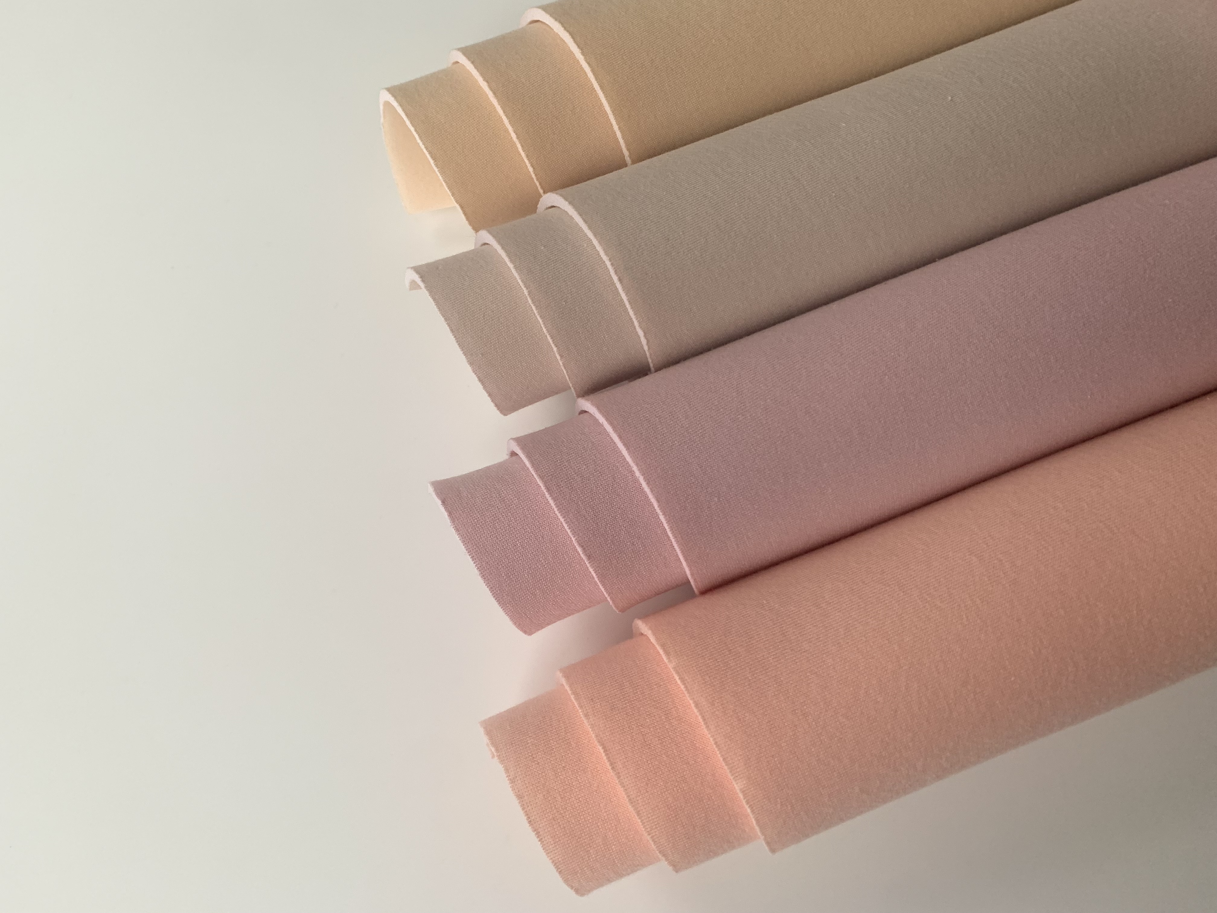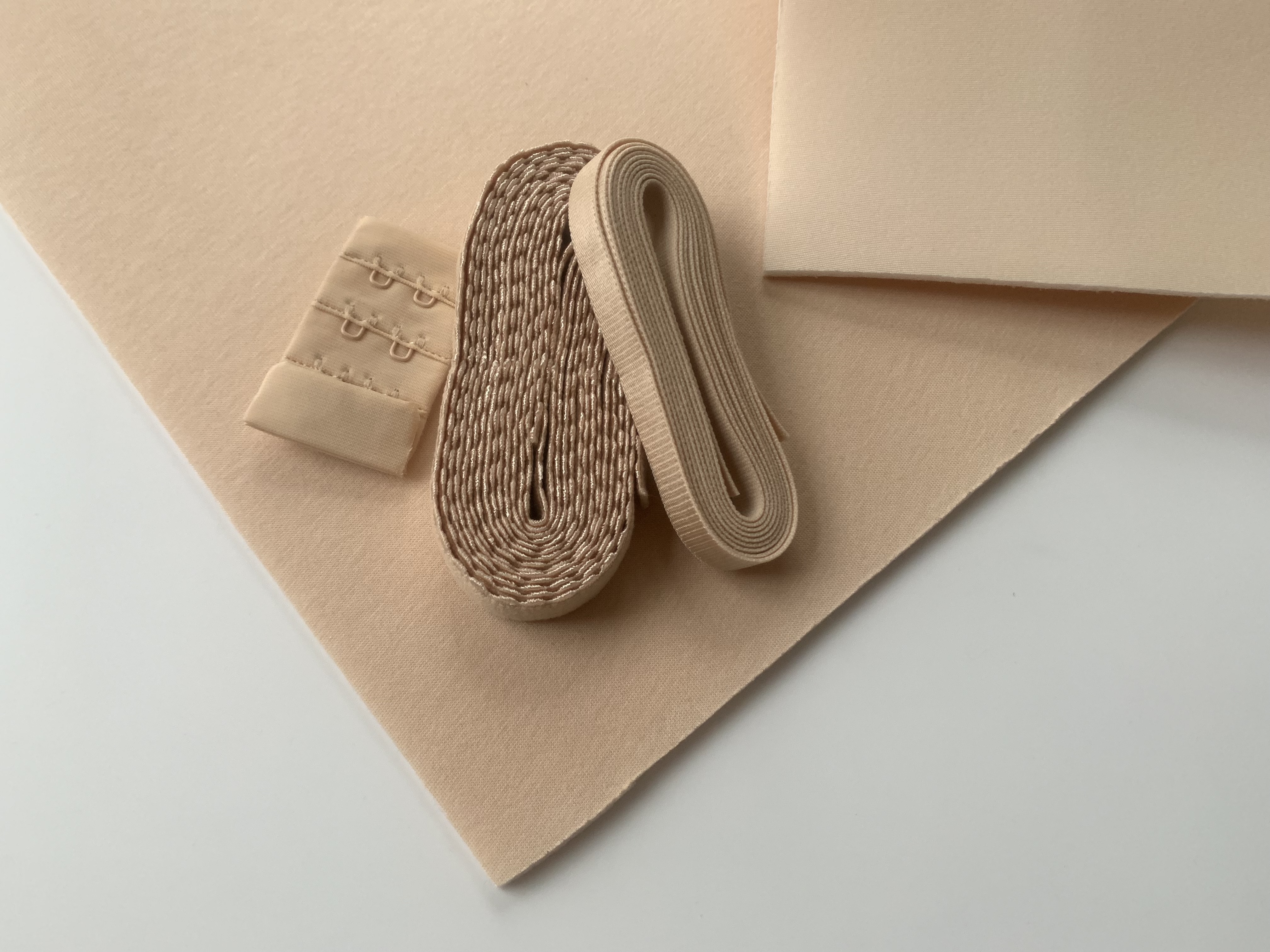 Бельевой поролон. Ламинирован с обеих сторон трикотажным полотном. С одной стороны 100% полиэстер, с другой 100% хлопок. Используется для пошива чашечек бюстгальтера. При транспортировке на сгибах могут появляться замины.