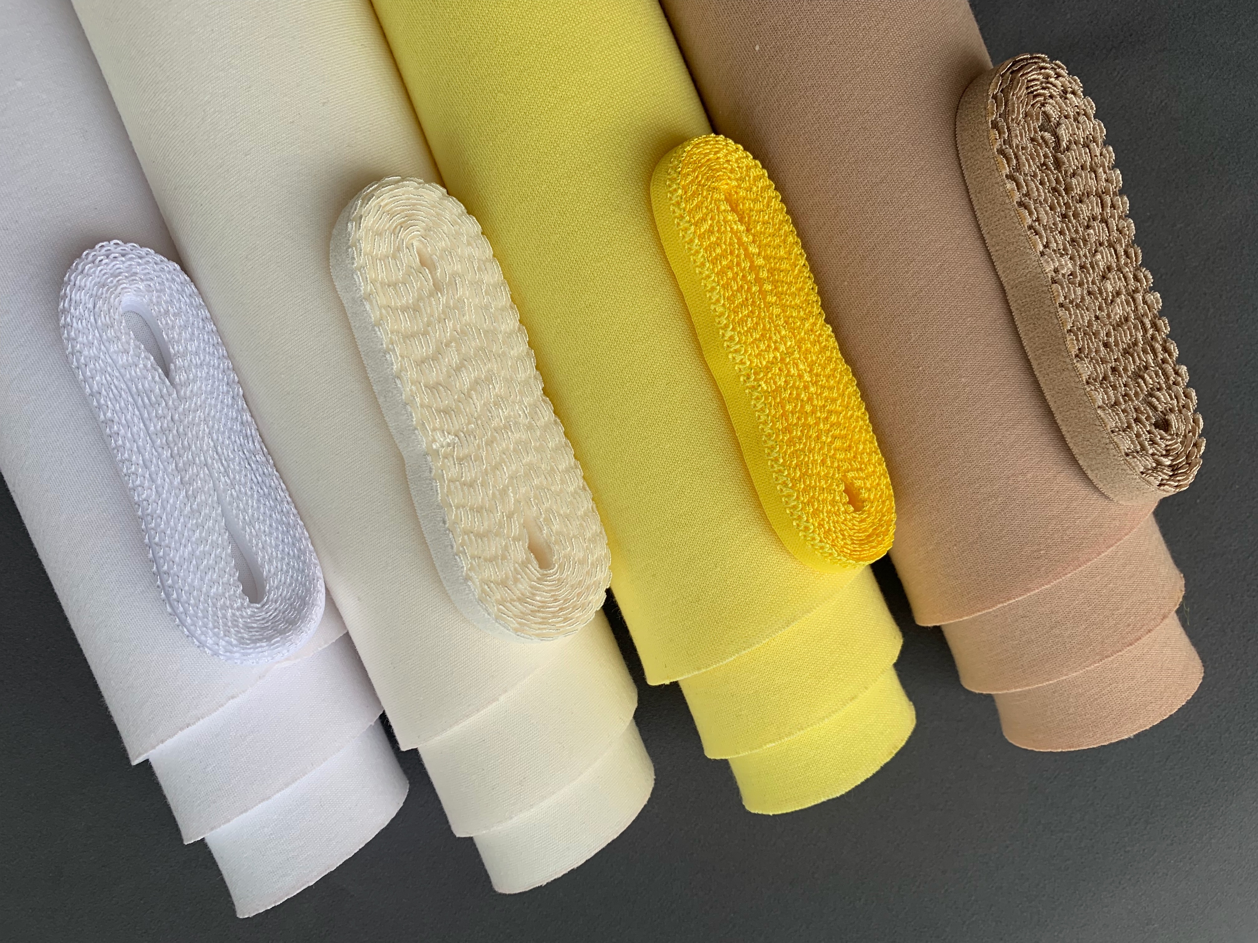 Бельевой поролон. Ламинирован с обеих сторон трикотажным полотном. С одной стороны 100% полиэстер, с другой 100% хлопок. Используется для пошива чашечек бюстгальтера. При транспортировке на сгибах могут появляться замины.