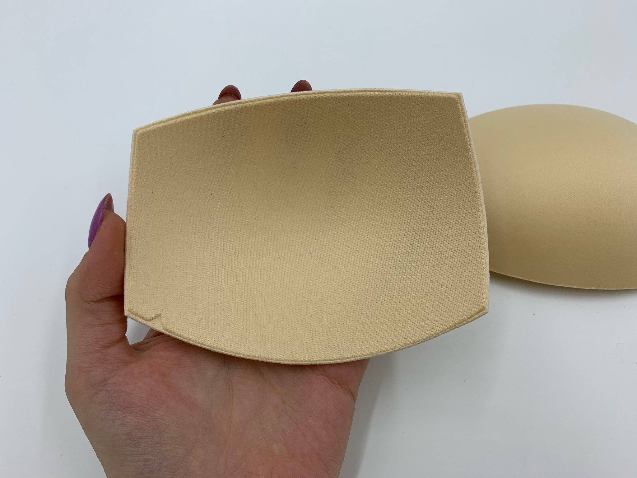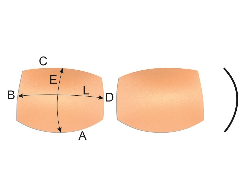 Трапециевидная форма чашки-вкладыша позволит создать модели купальников - бандо, бикини, а так же трикини. Различается конфигурацией и линейными размерами. Подбирается приближенно к форме готового изделия.