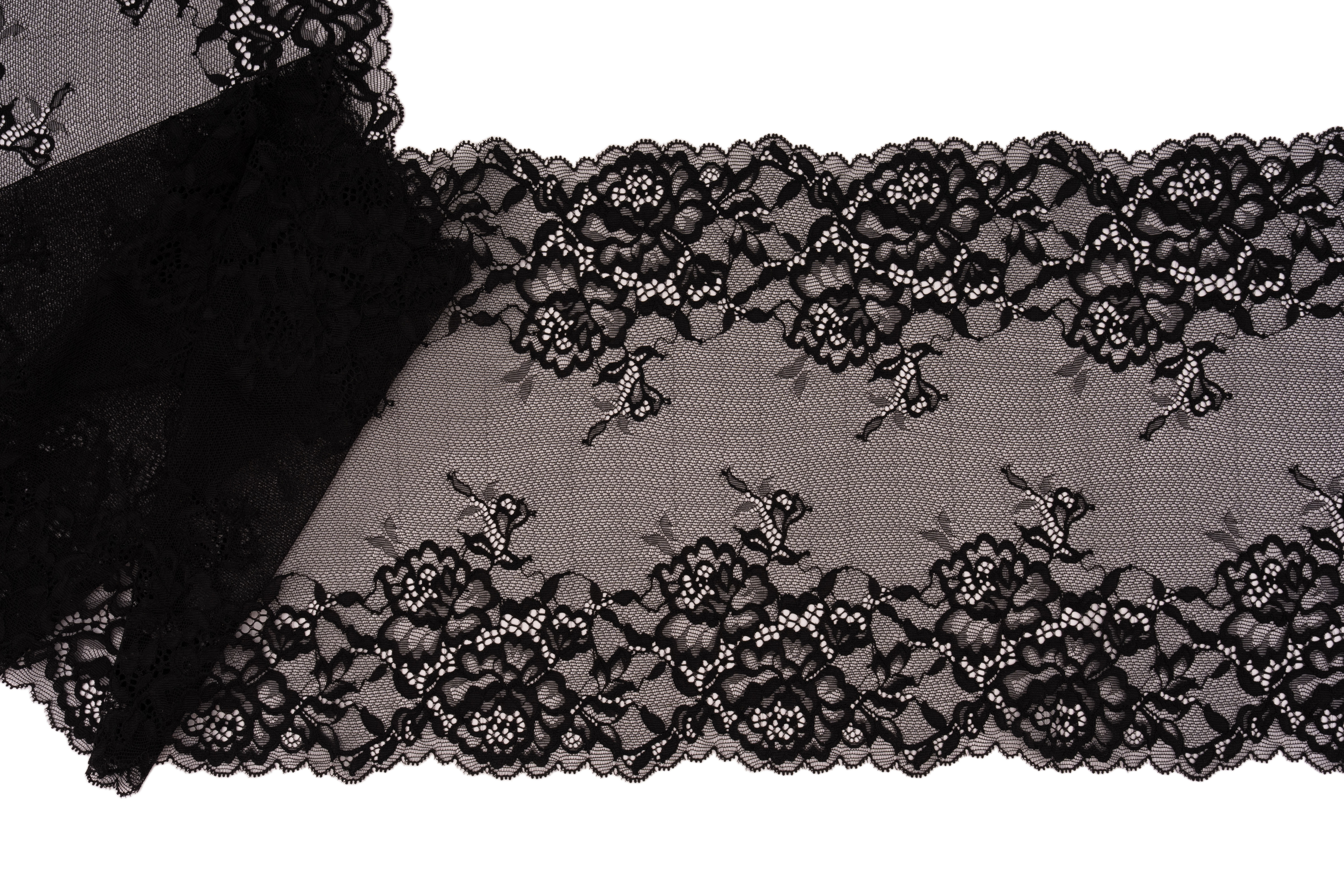 Кружево эластичное черное 23 см, букет (КЭ-121)