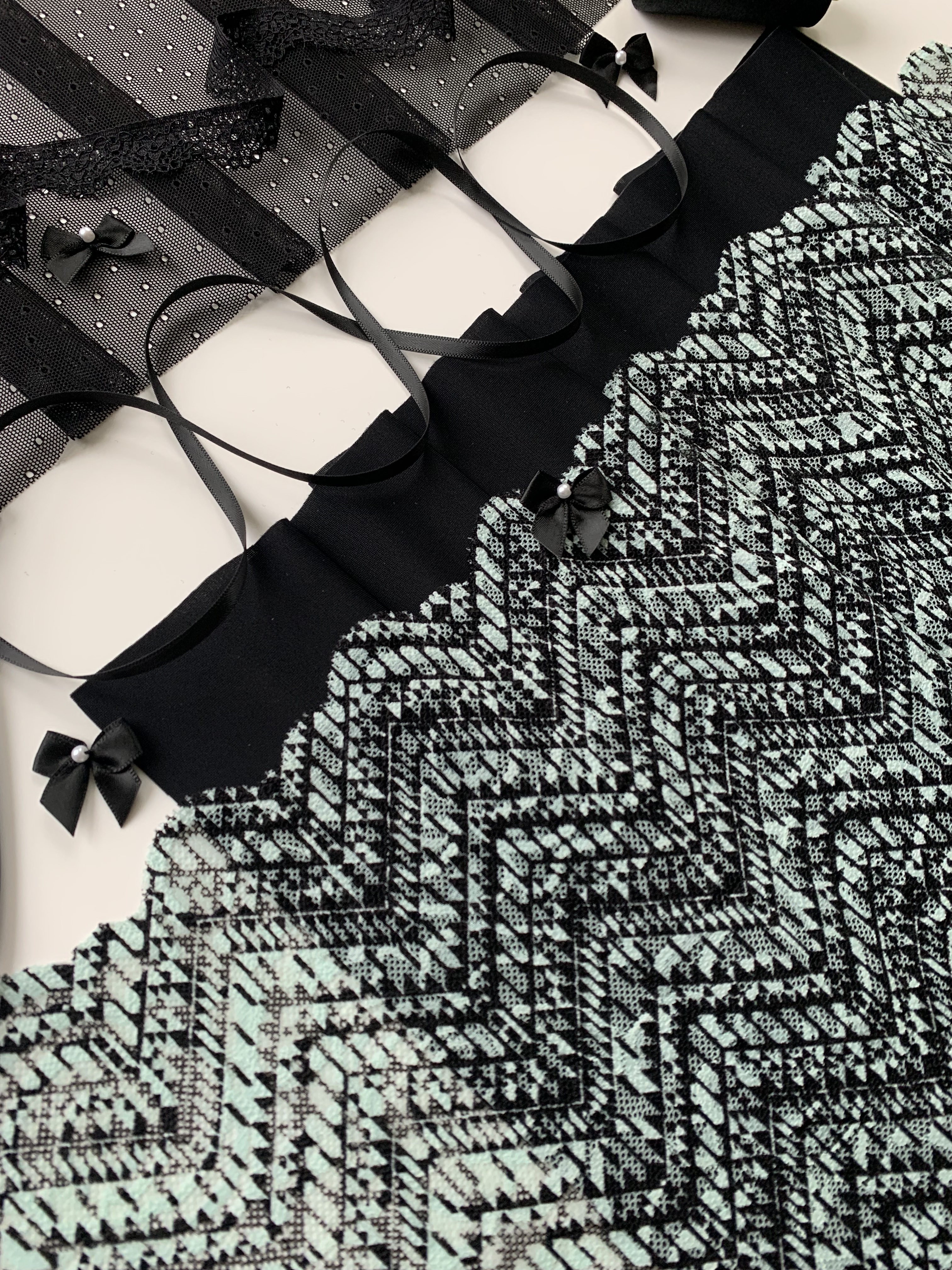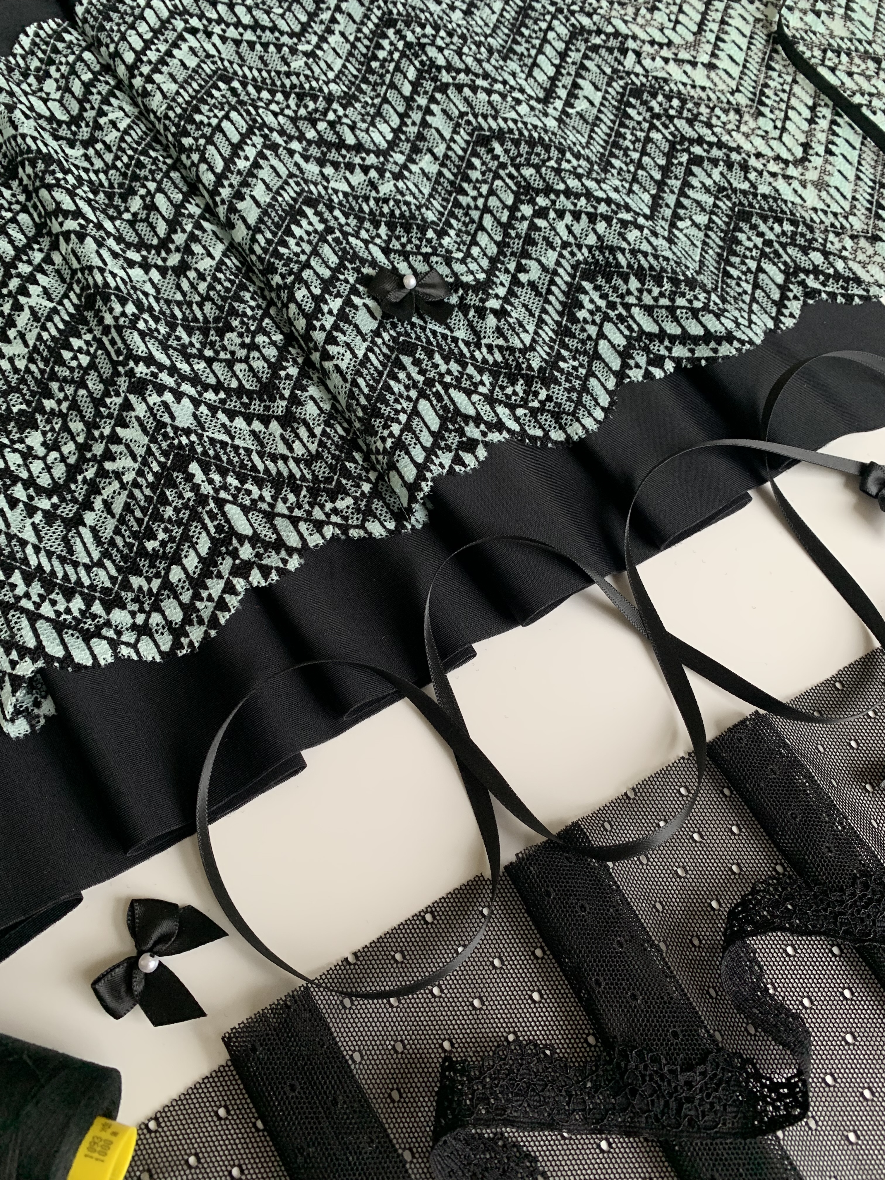 В кружеве возможно наличие стыков. Они не входят в заказанный метраж. Небольшое количество может быть добавлено к заказу для компенсации при раскрое.