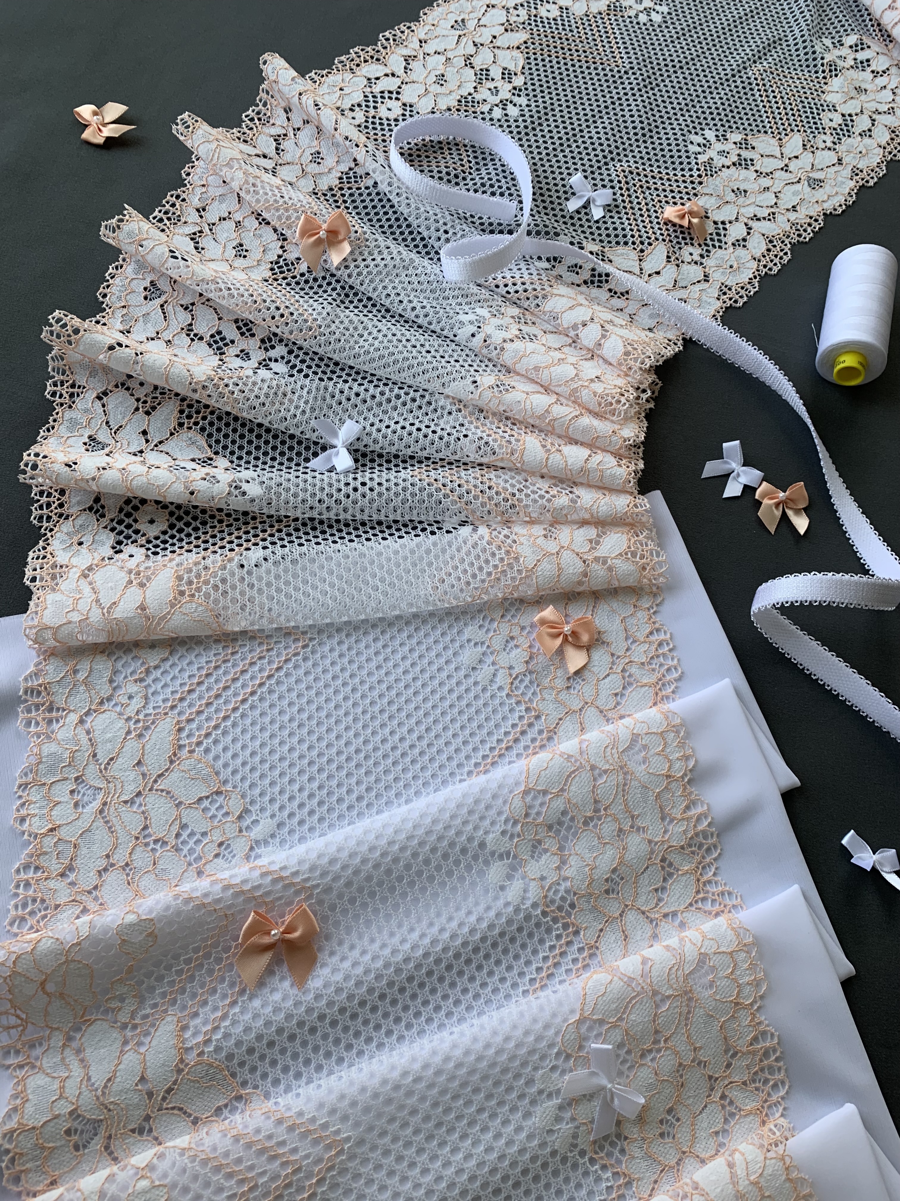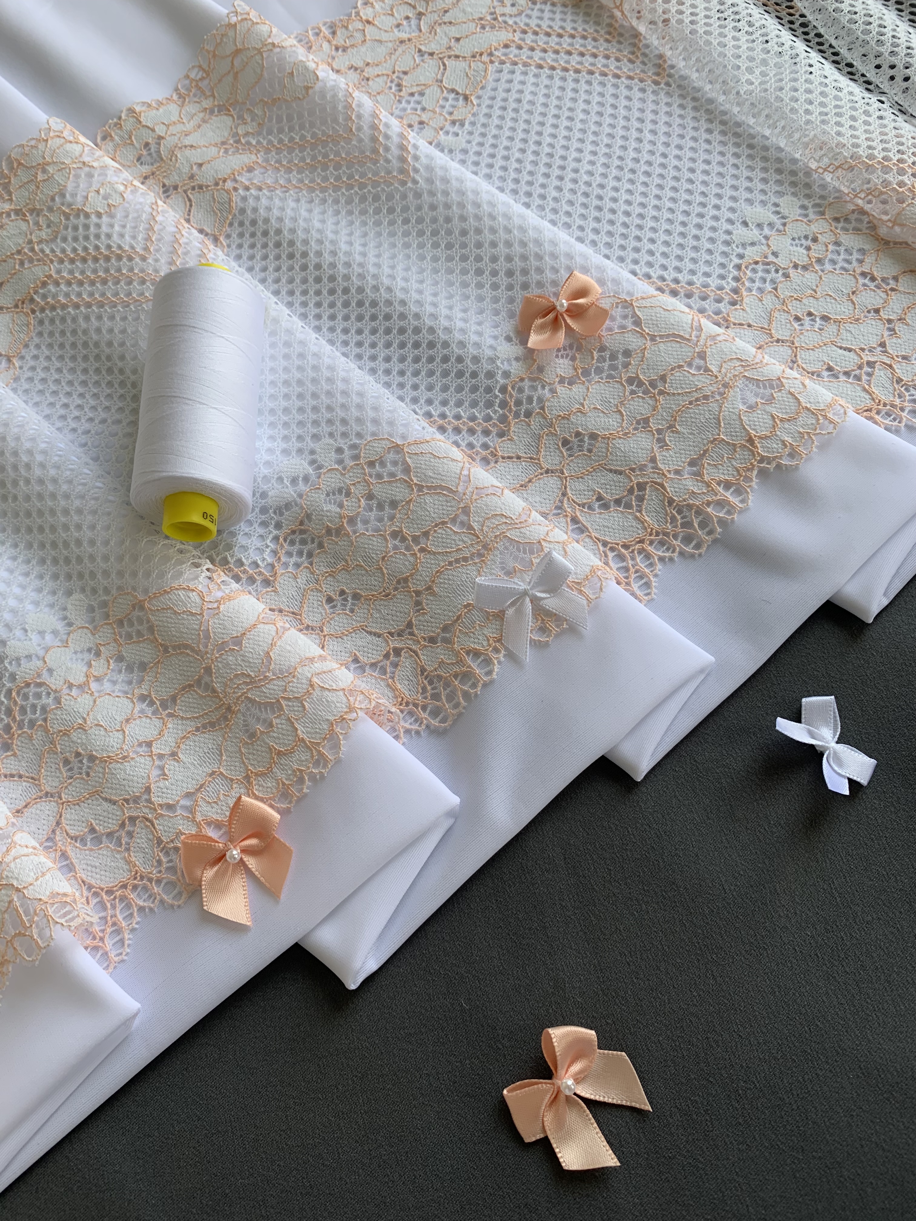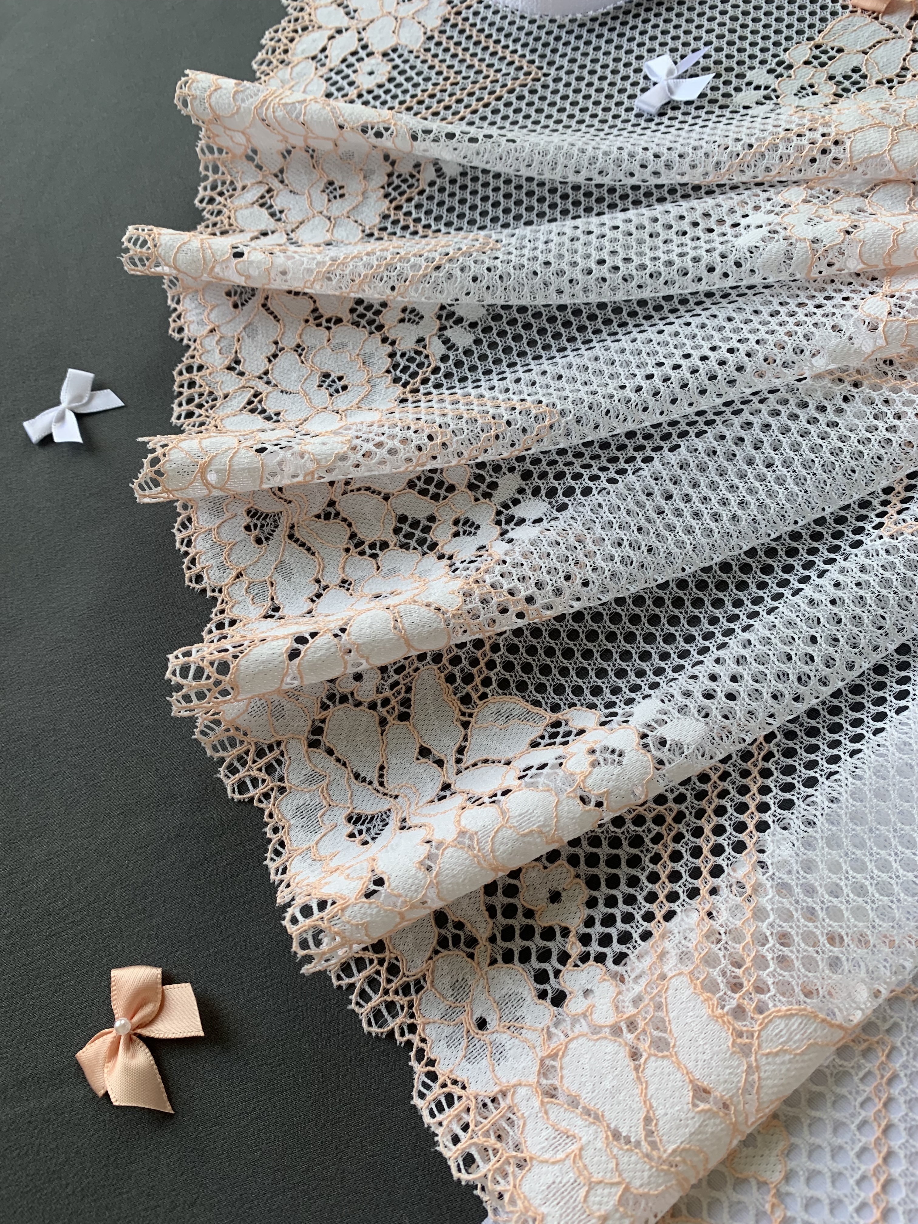 В кружеве возможно наличие стыков. Они не входят в заказанный метраж. Небольшое количество может быть добавлено к заказу для компенсации при раскрое.