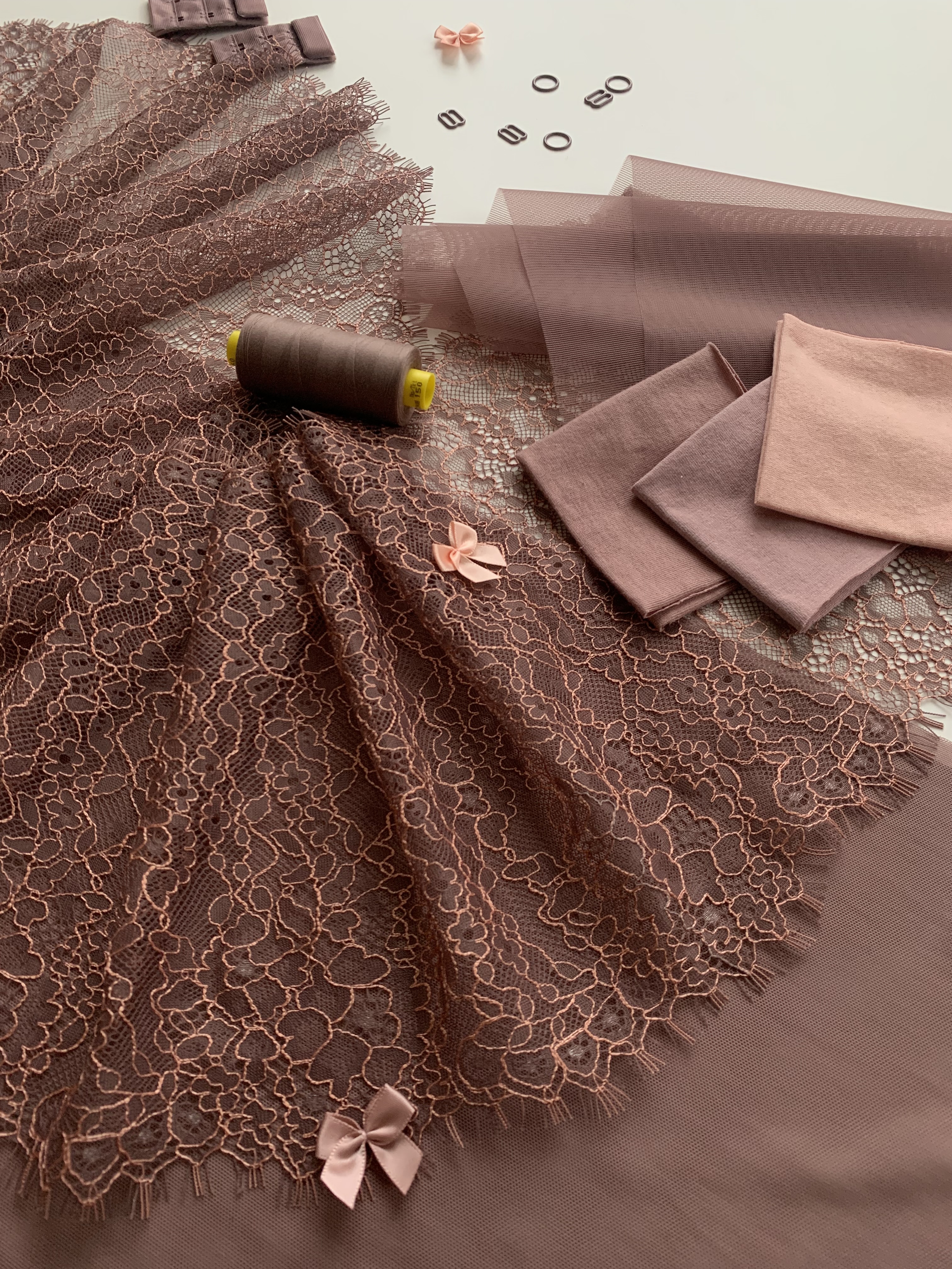 Кружево реснички кофе/персик (21*150 см) (КР047)