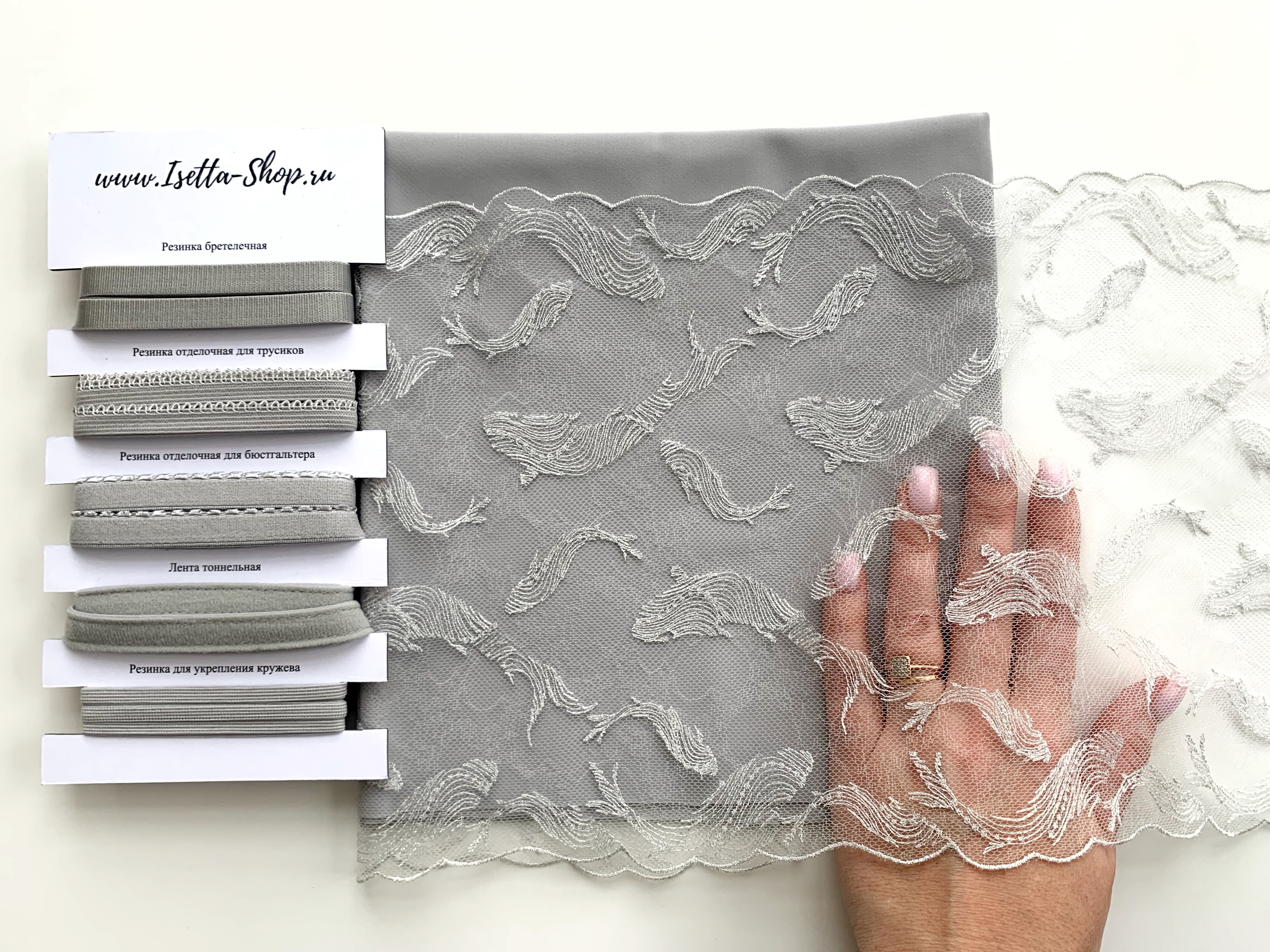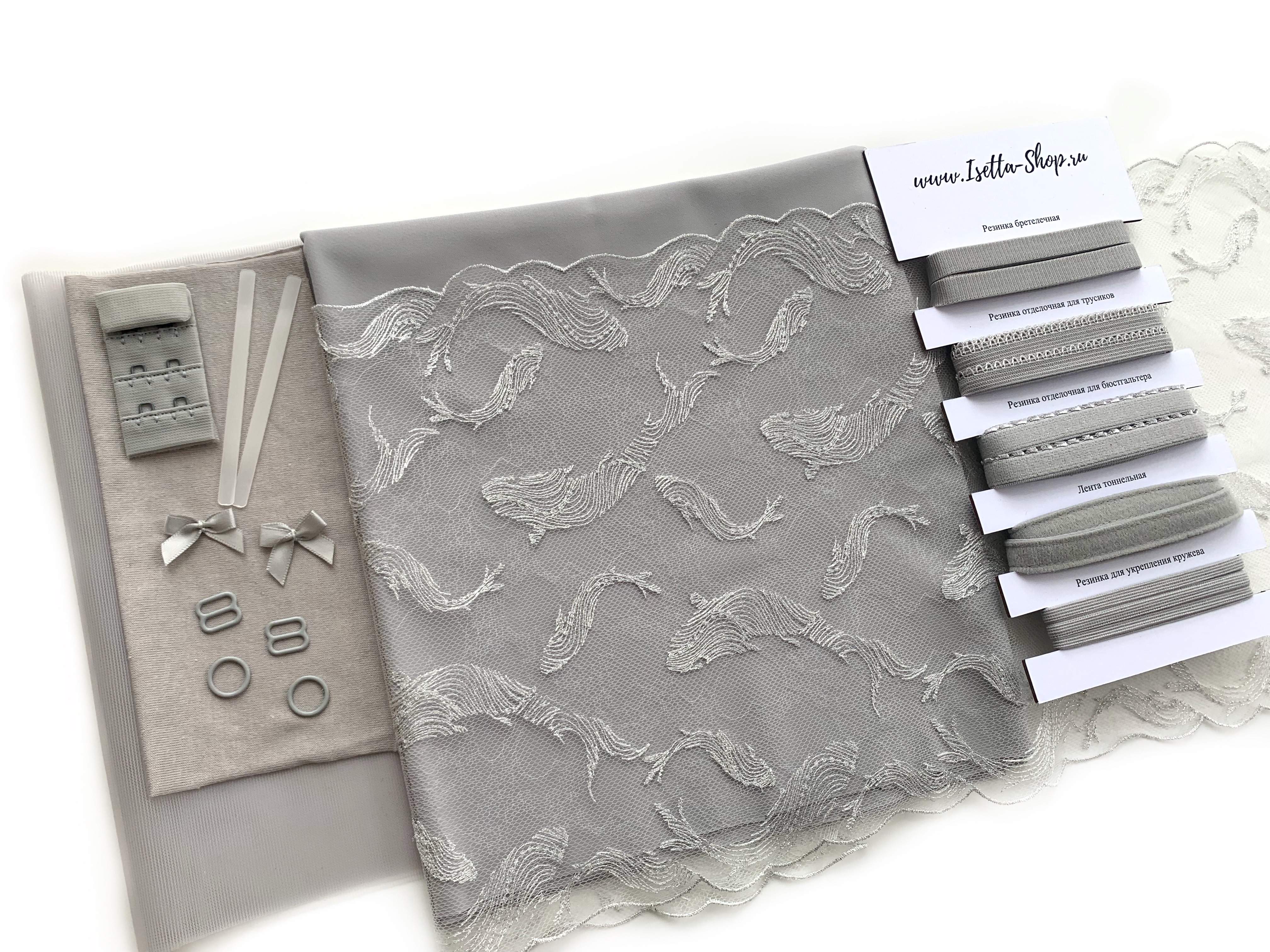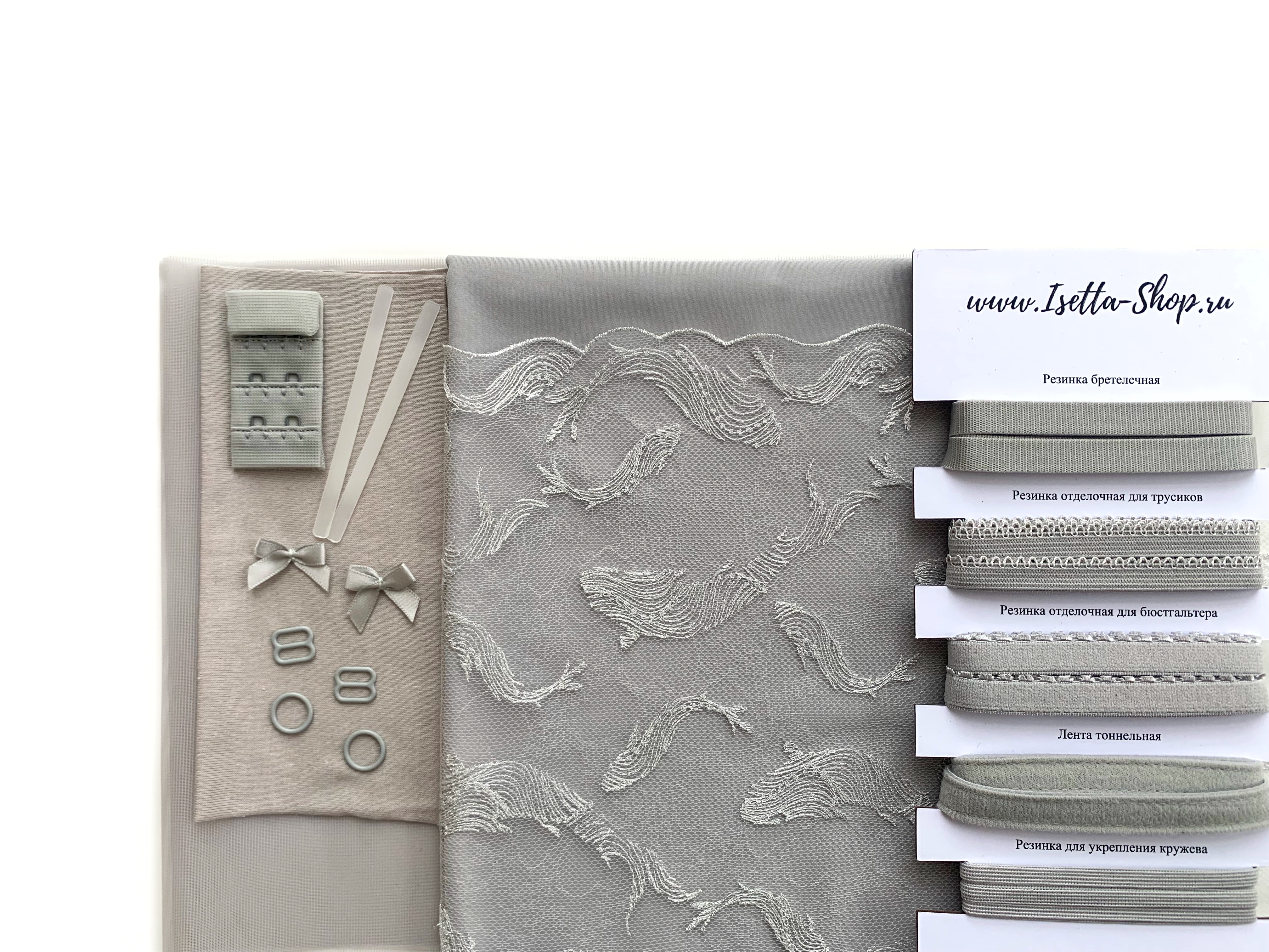 В набор входит все самое необходимое для пошива одного бюстгальтера и трусиков. Вам останется только выбрать каркасы.