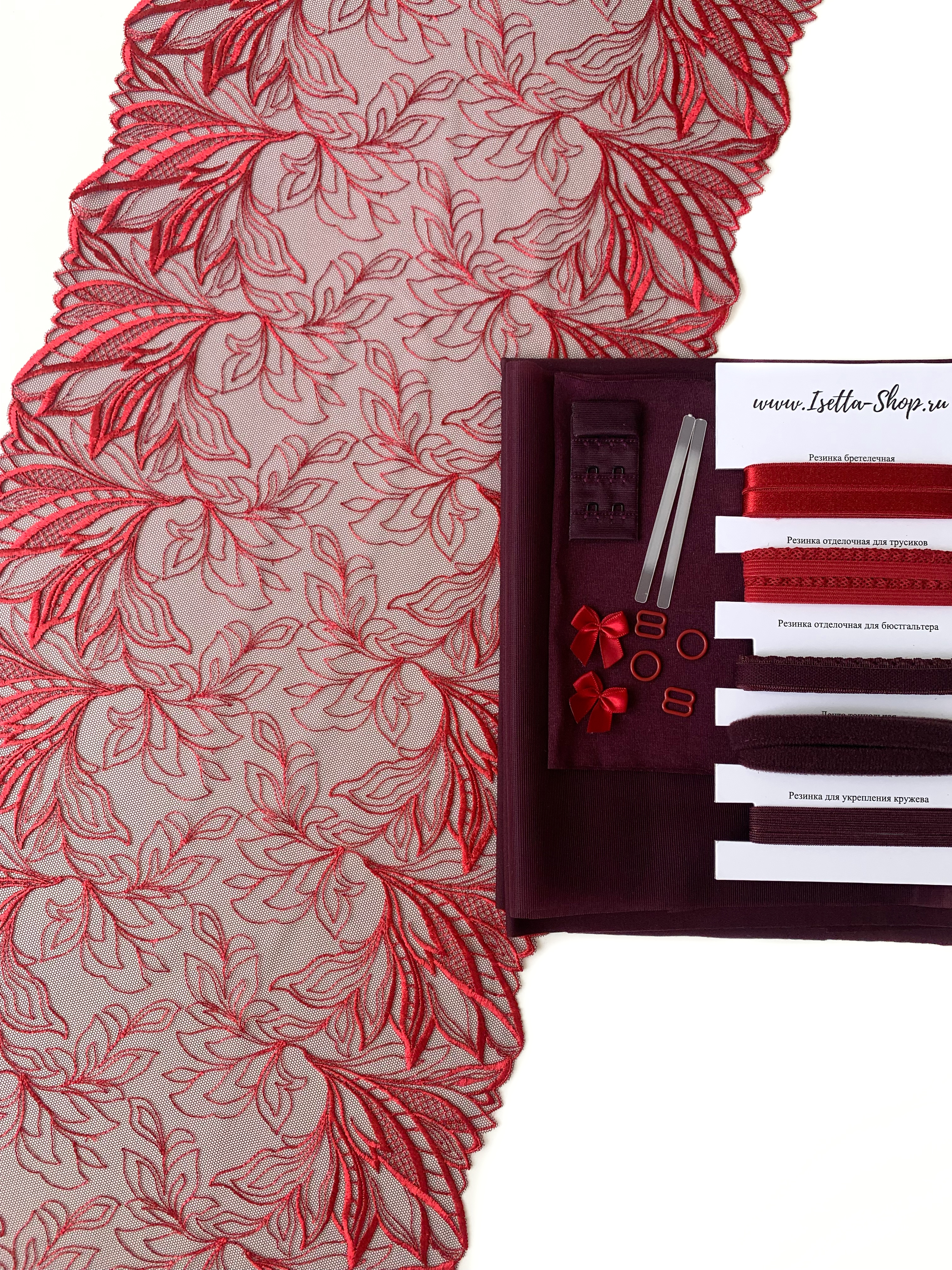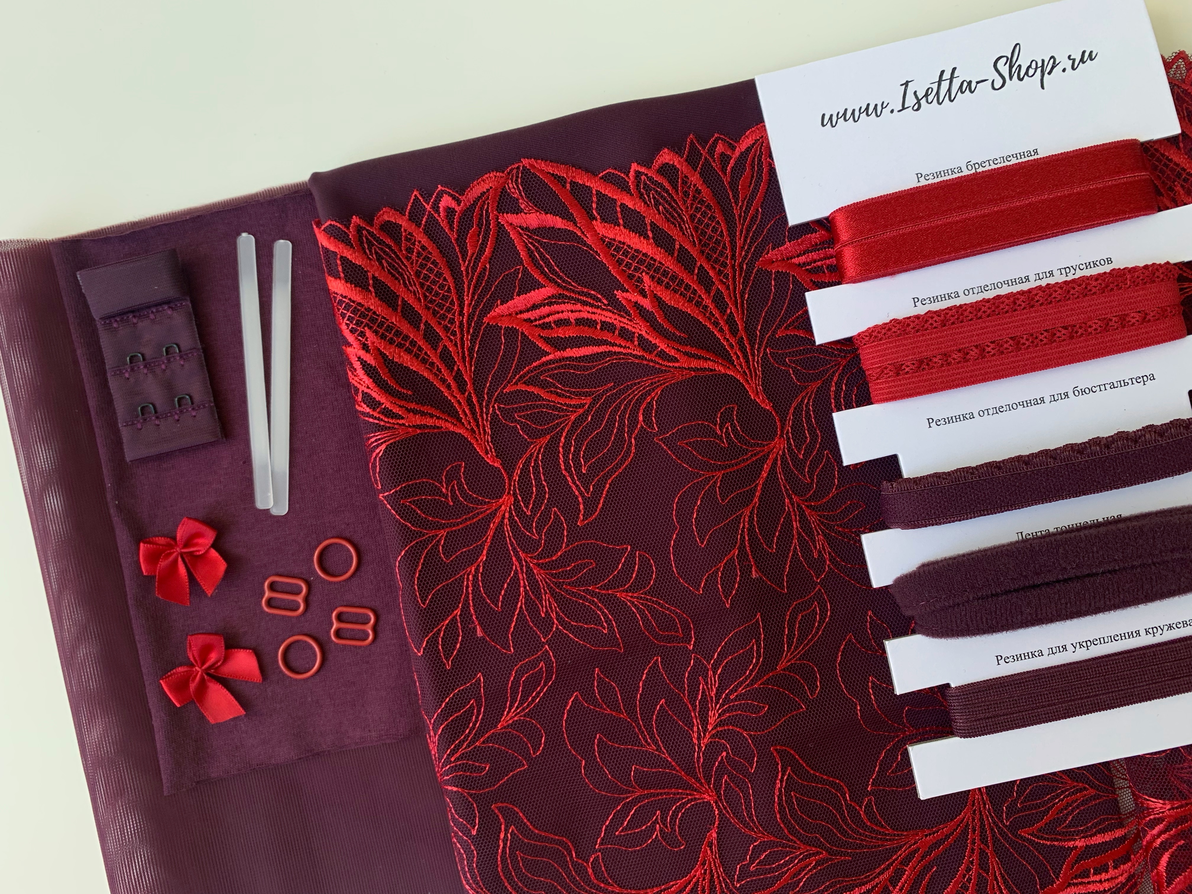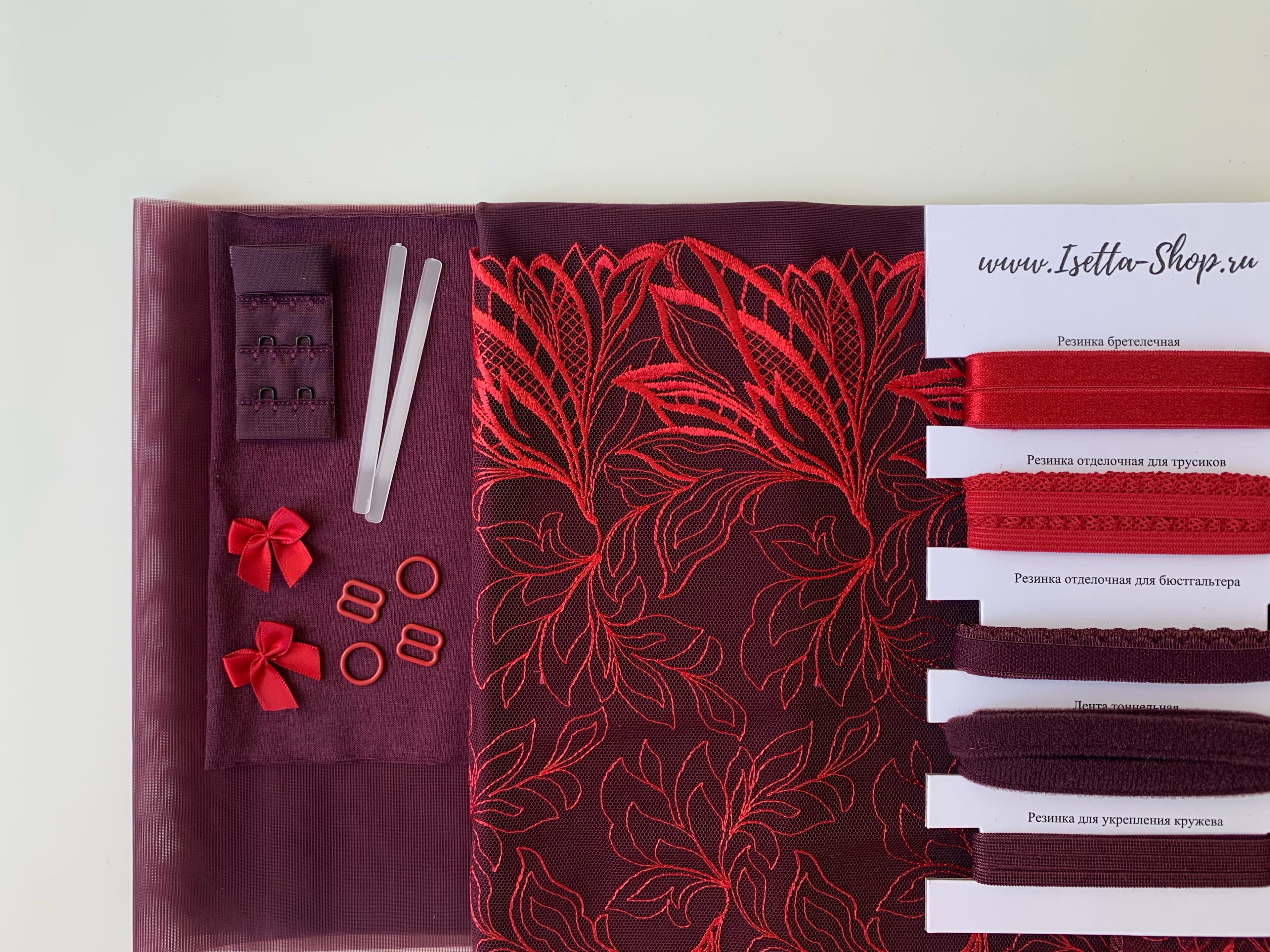 В набор входит все самое необходимое для пошива одного бюстгальтера и трусиков. Вам останется только выбрать каркасы.
