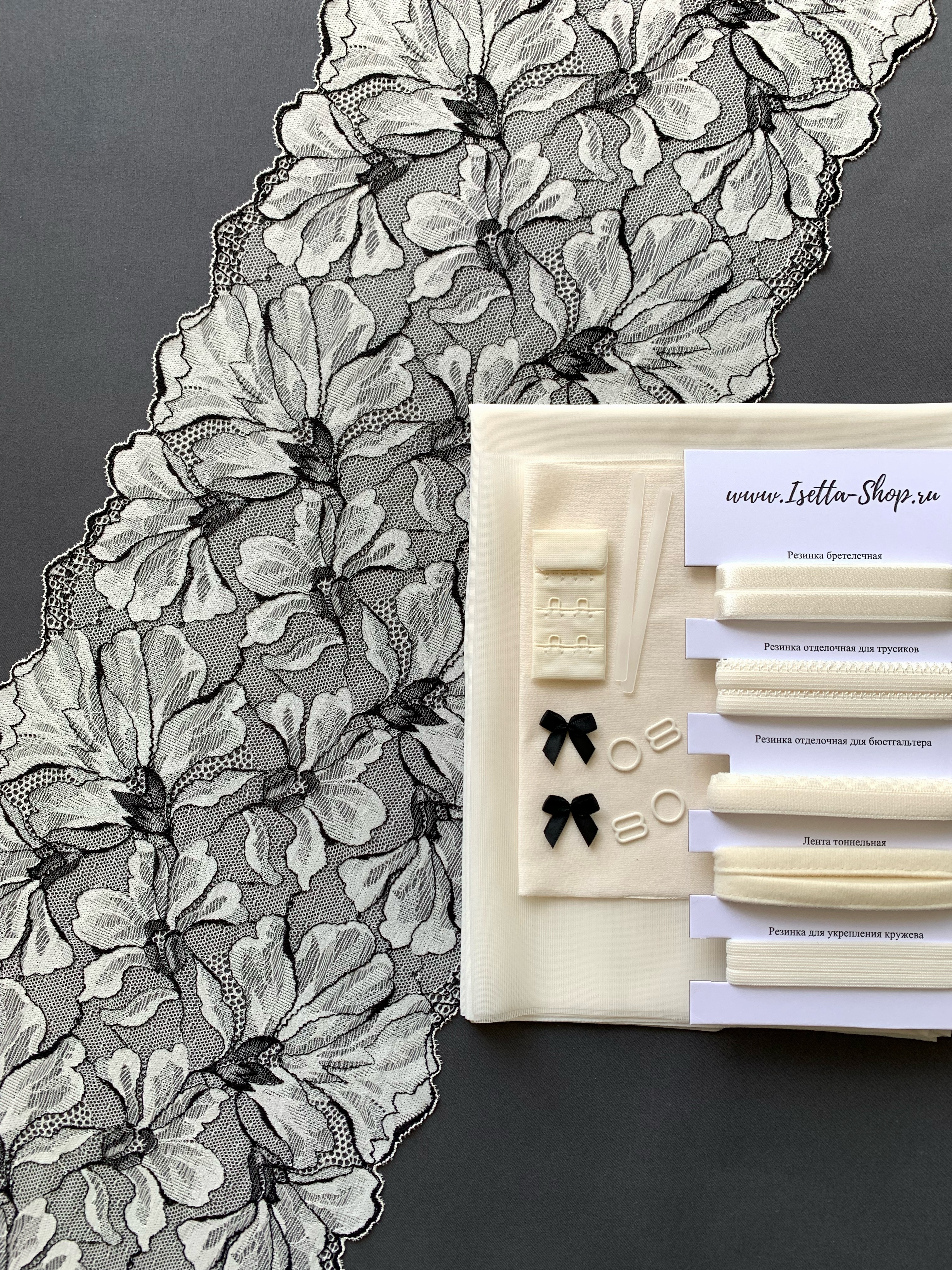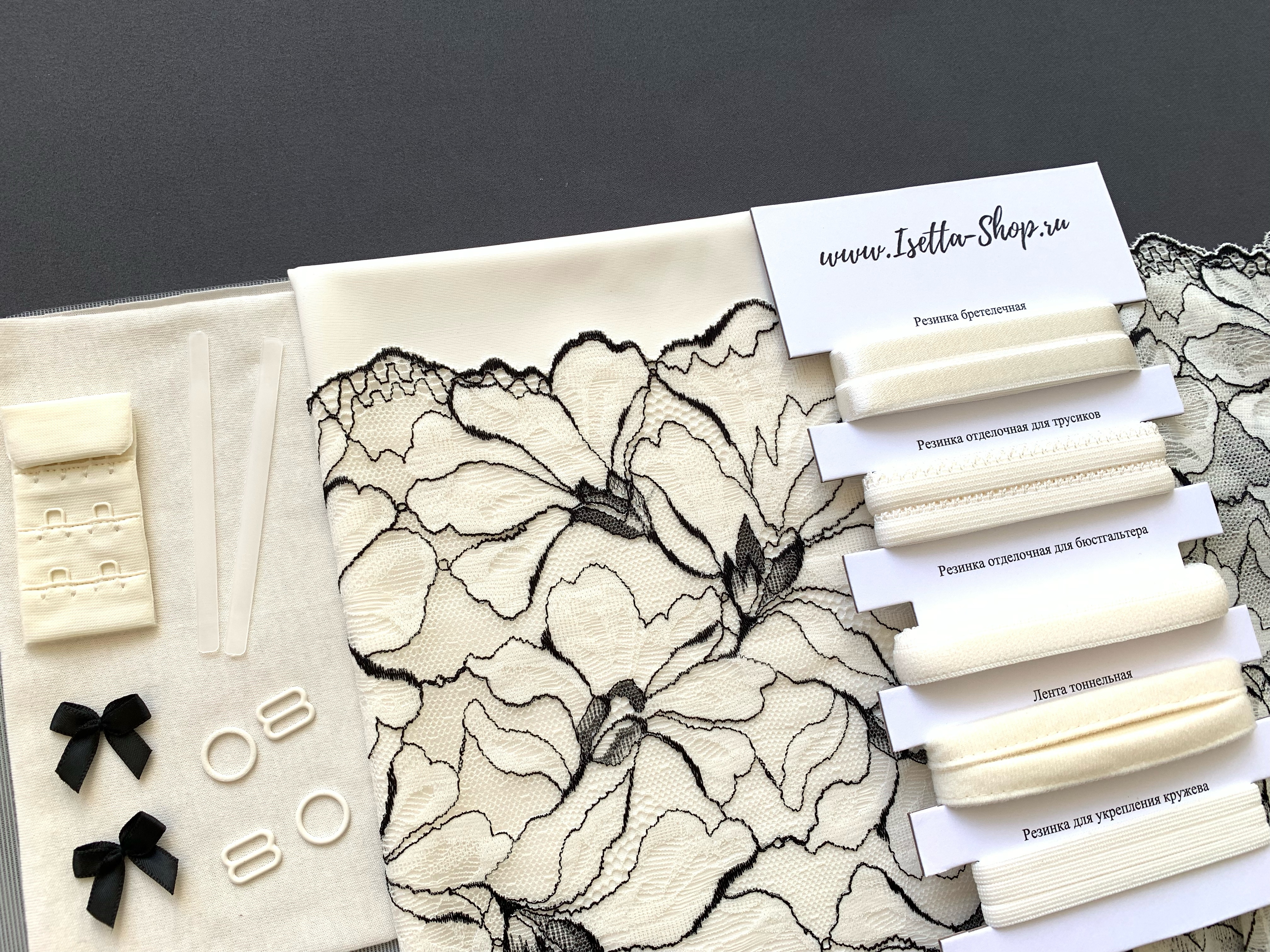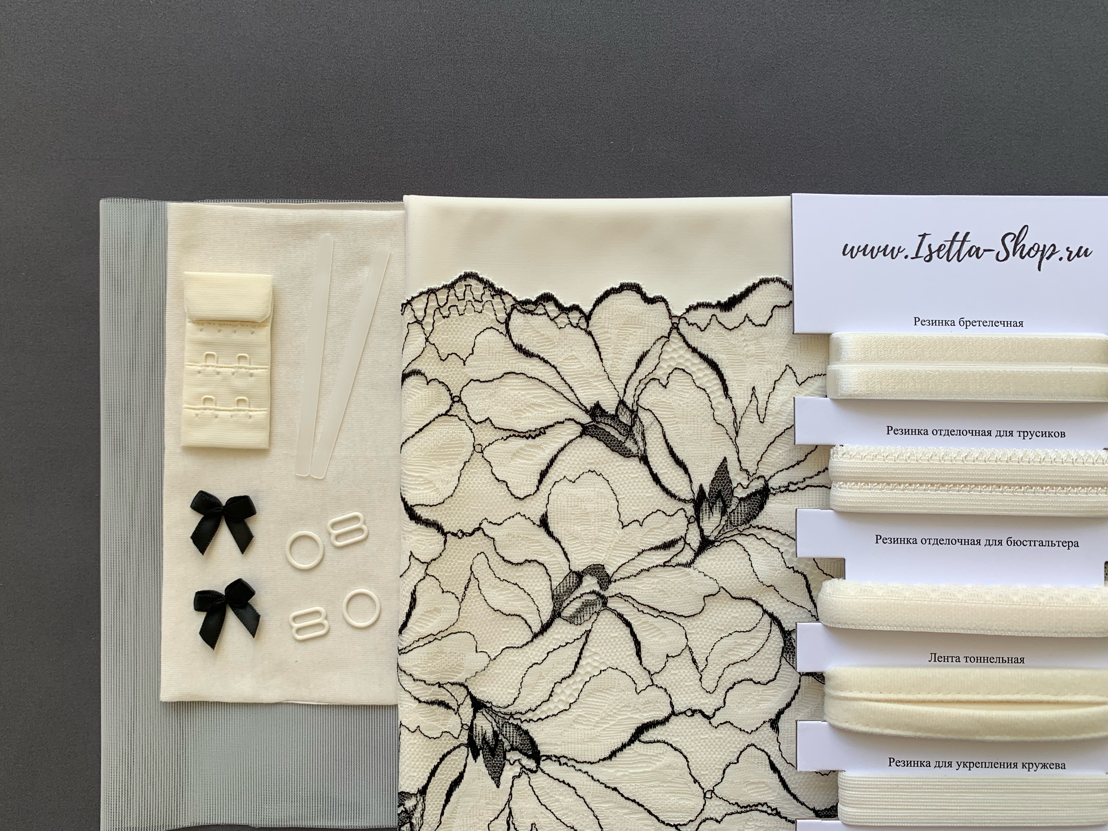 В набор входит все самое необходимое для пошива одного бюстгальтера и трусиков. Вам останется только выбрать каркасы.