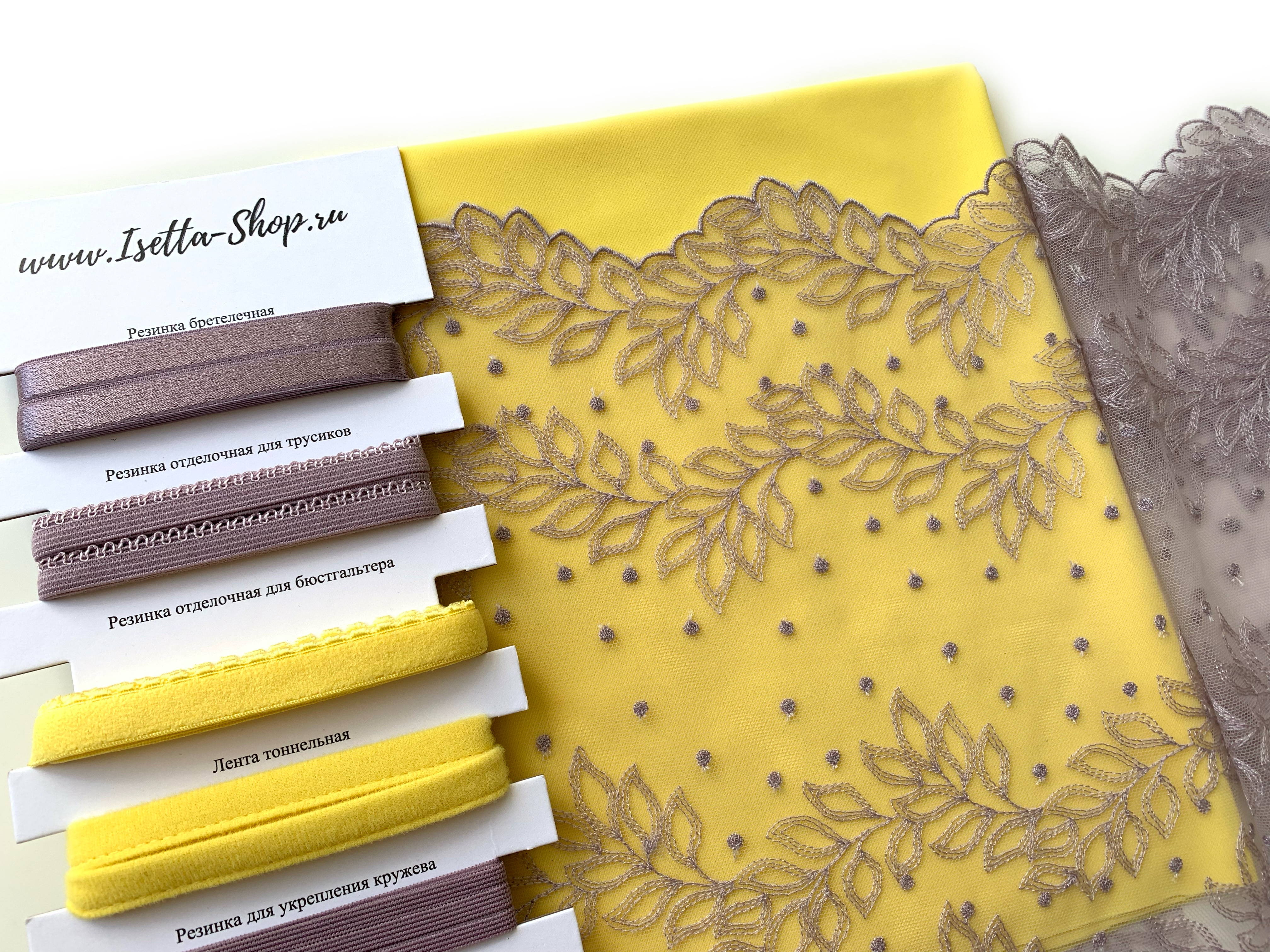 В набор входит все самое необходимое для пошива одного бюстгальтера и трусиков. Вам останется только выбрать каркасы.