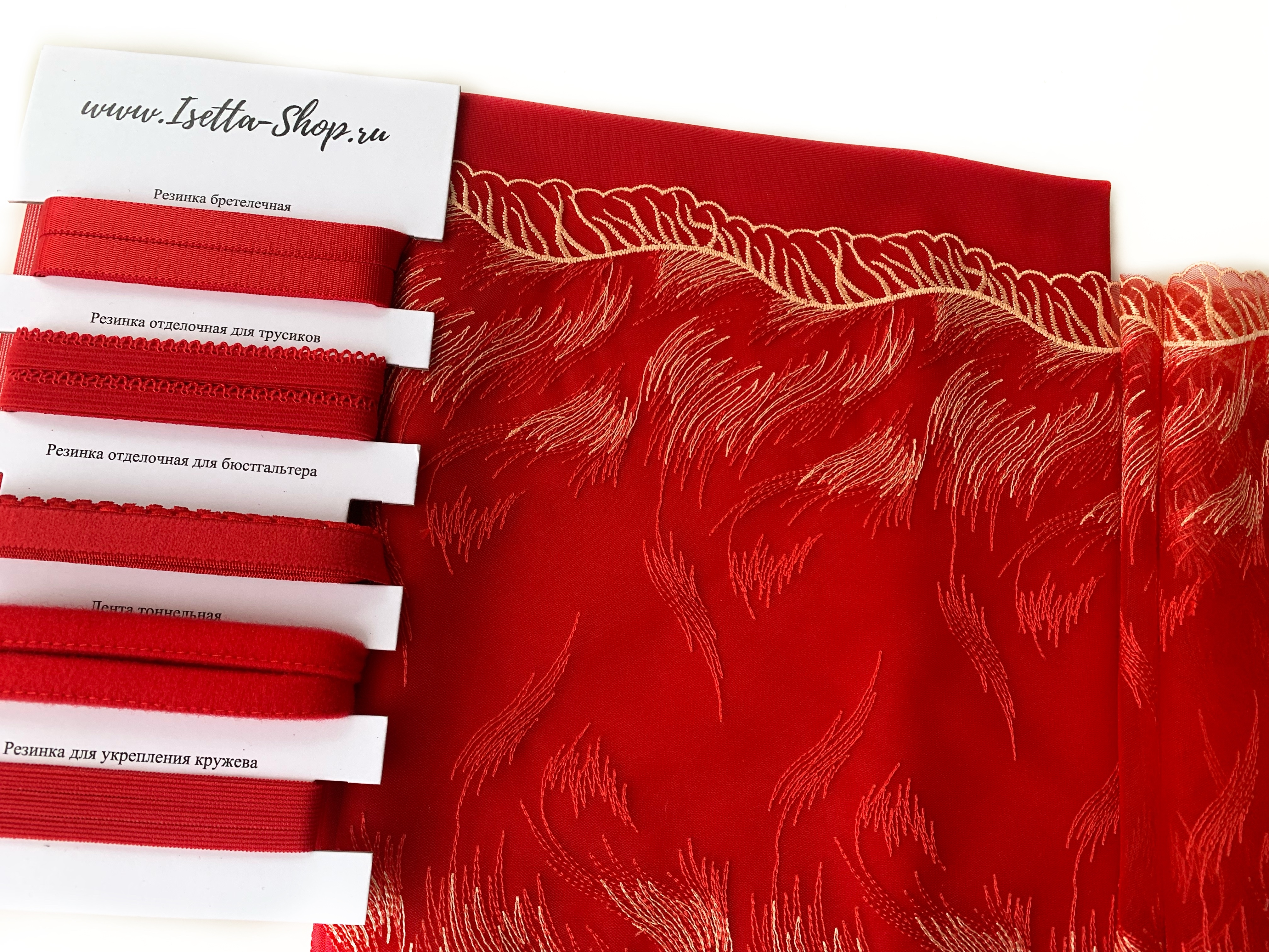 В набор входит все самое необходимое для пошива одного бюстгальтера и трусиков. Вам останется только выбрать каркасы.