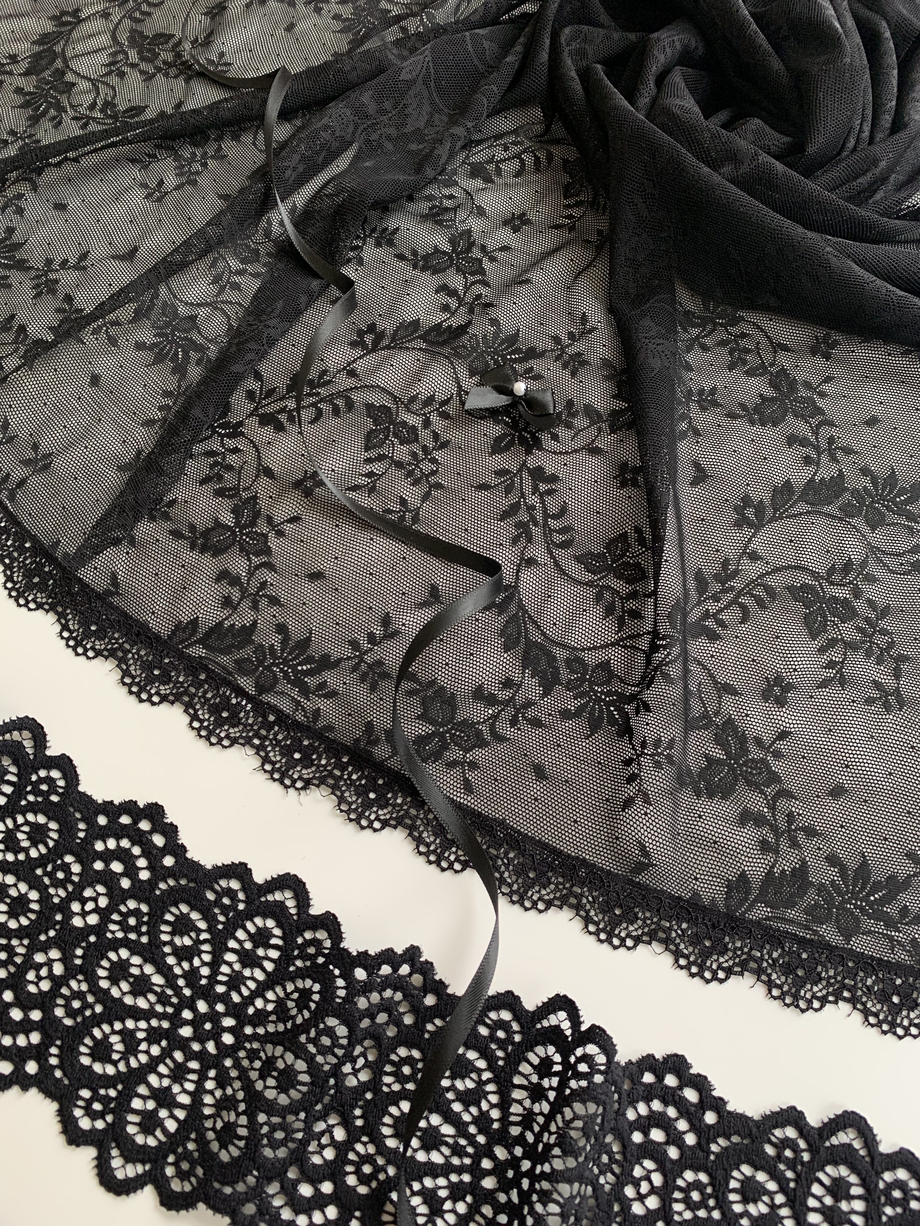 Эластичная сетка оптимальной плотности для пошива нижнего белья, боди. Рисунок - цветочный с веточками. Тянется только по ширине полотна, по высоте - почти не растягивается.