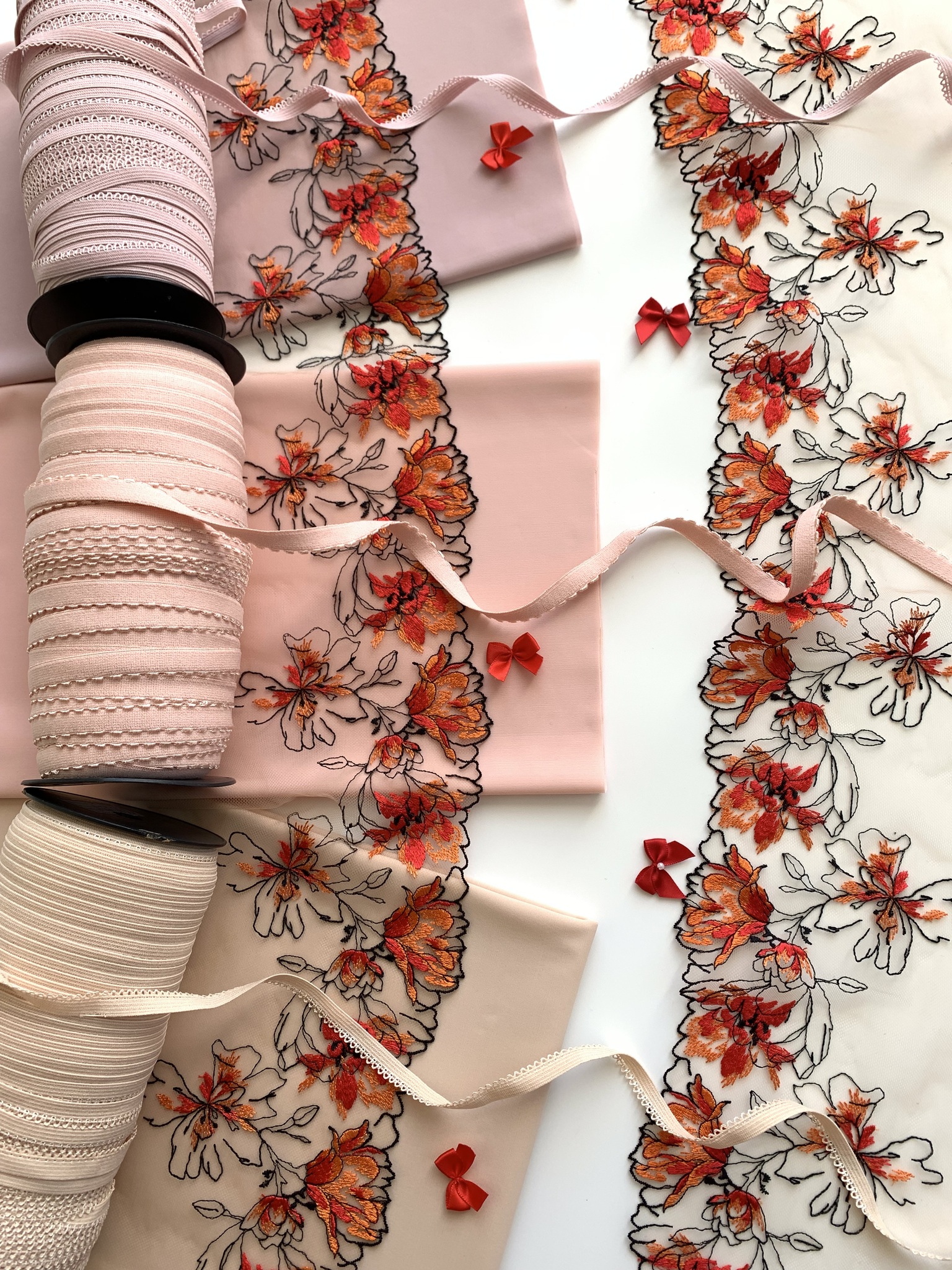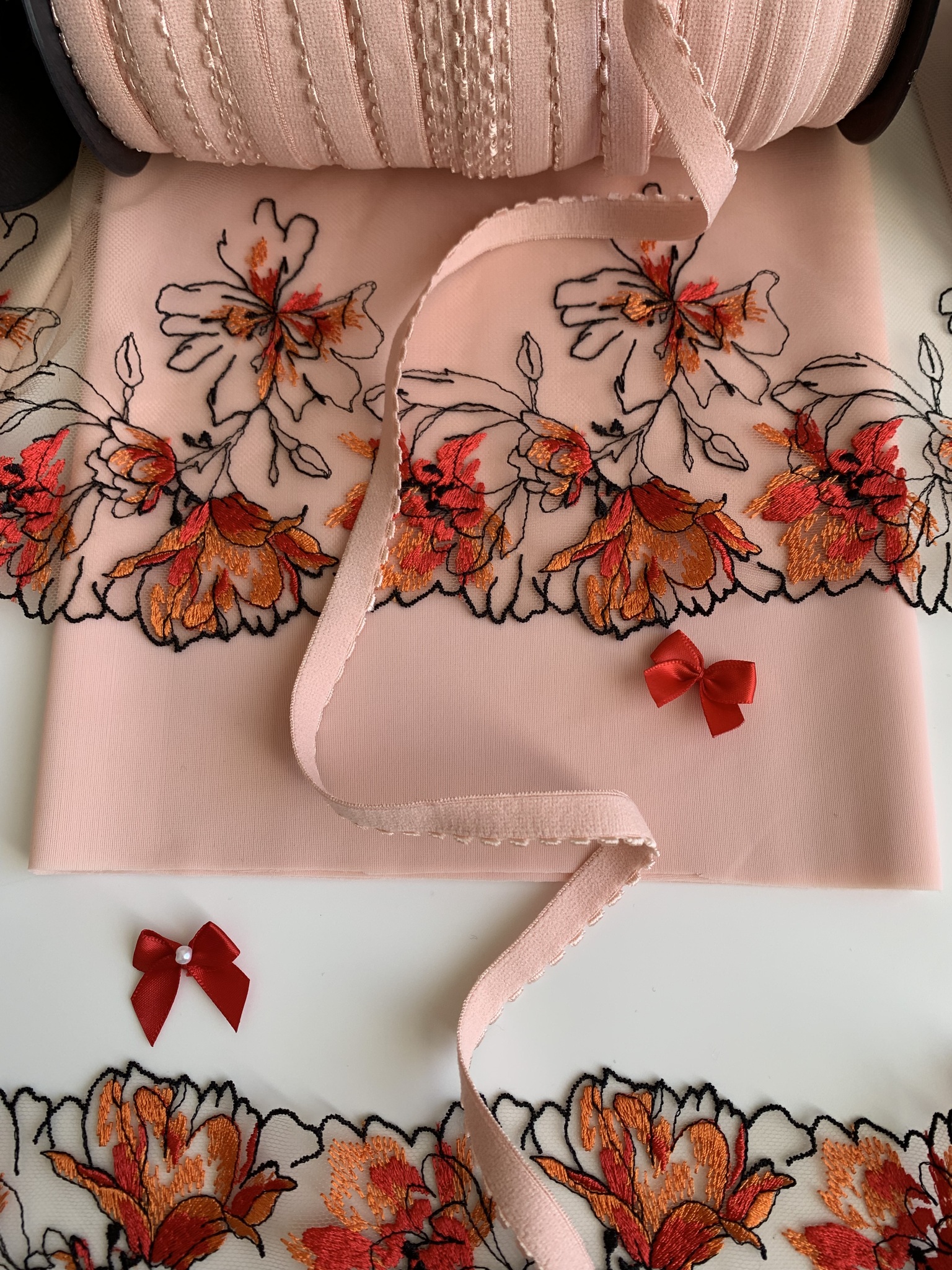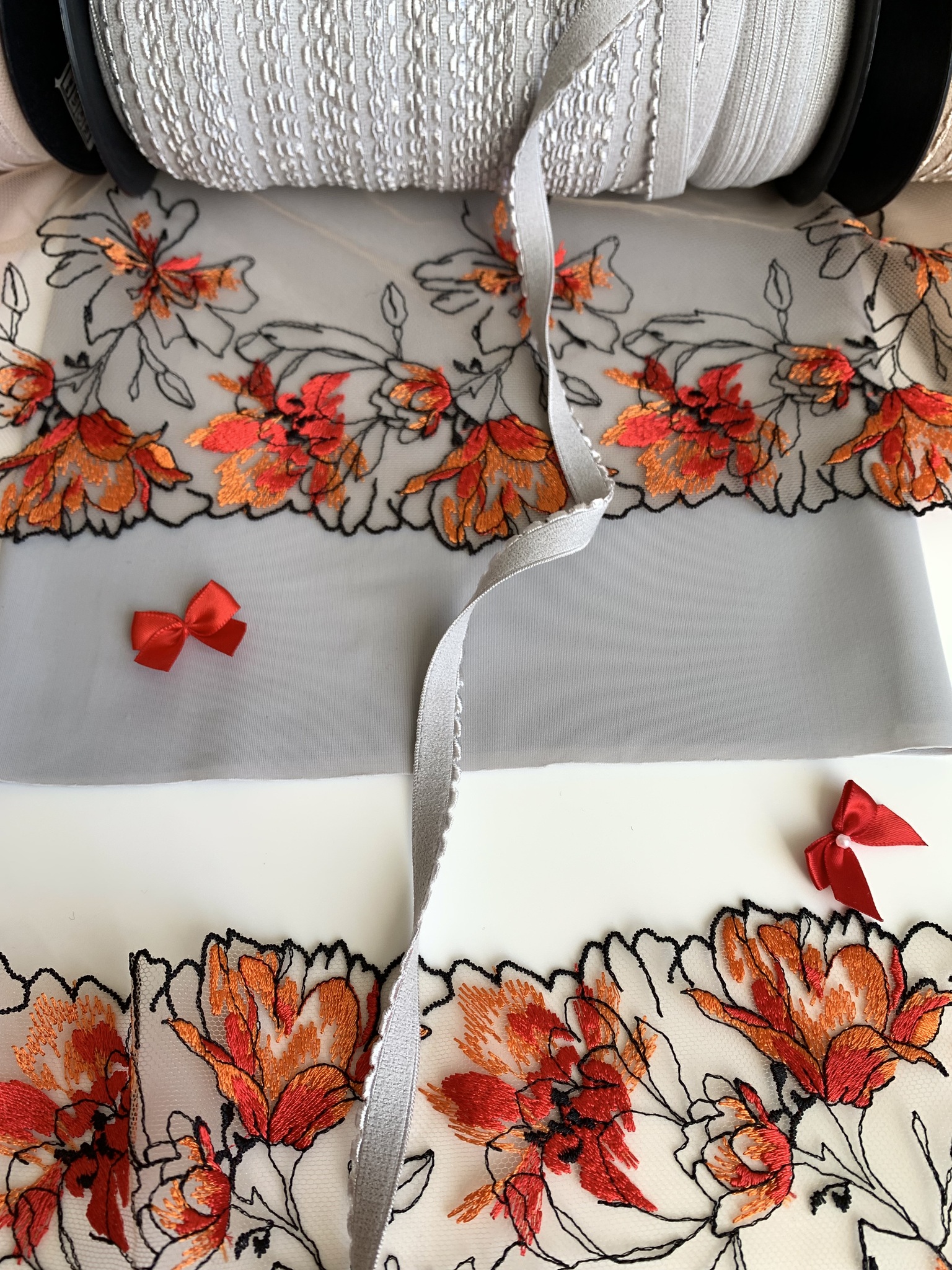 Вышивка неэластичная. Имеет левую и правую сторону (отличаются направлением рисунка).