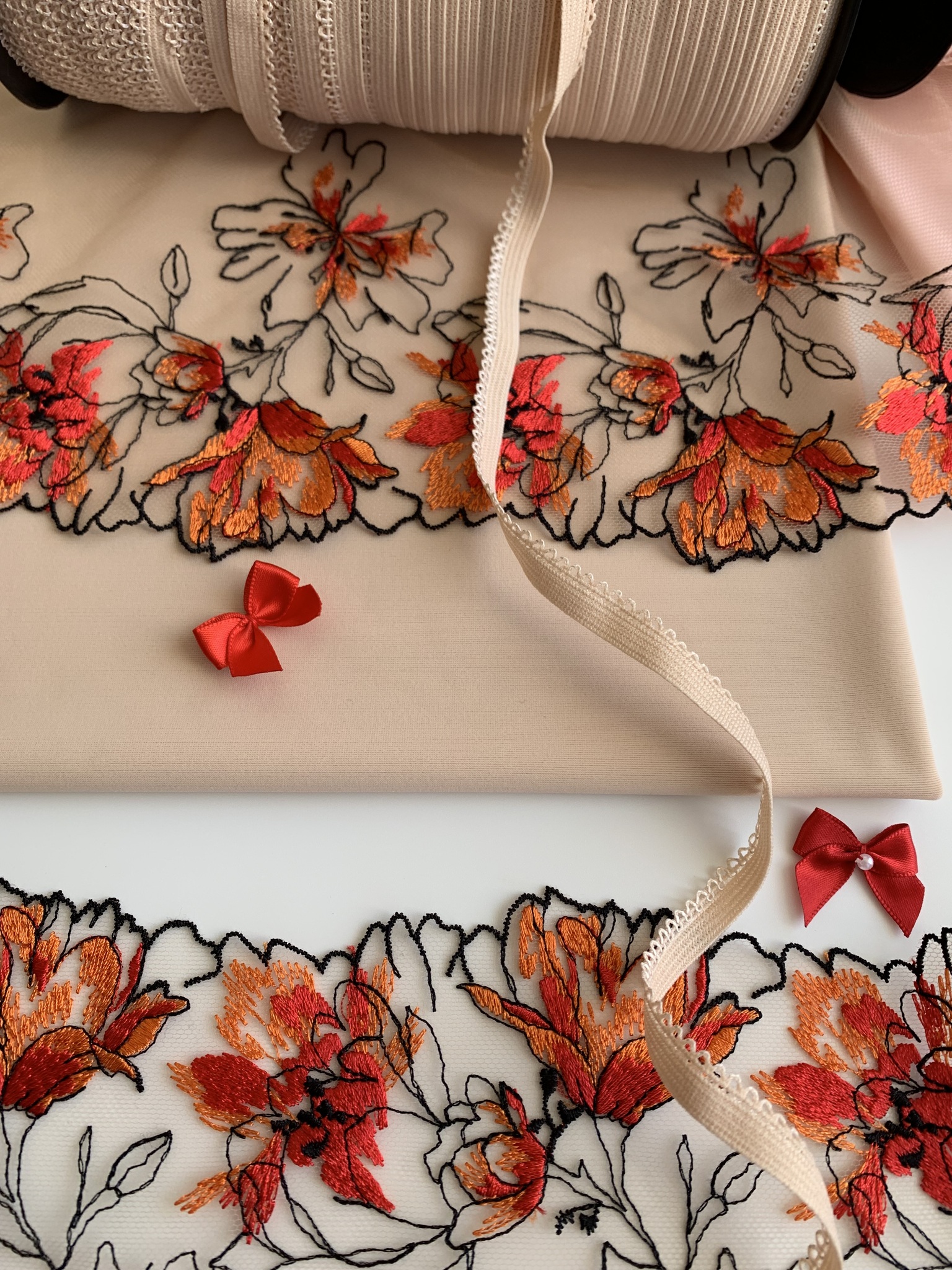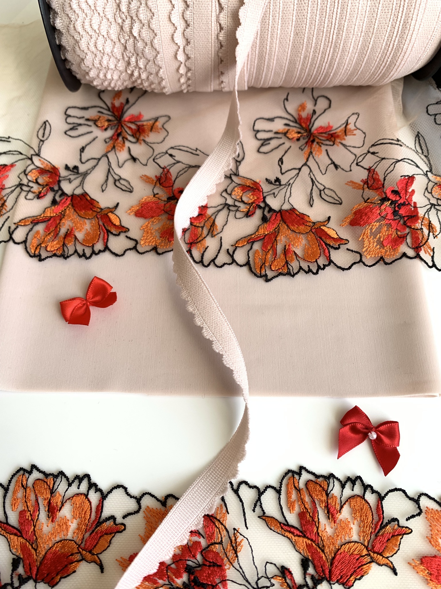 Вышивка на сетке бежевая/оранжевая (правая) 15 см