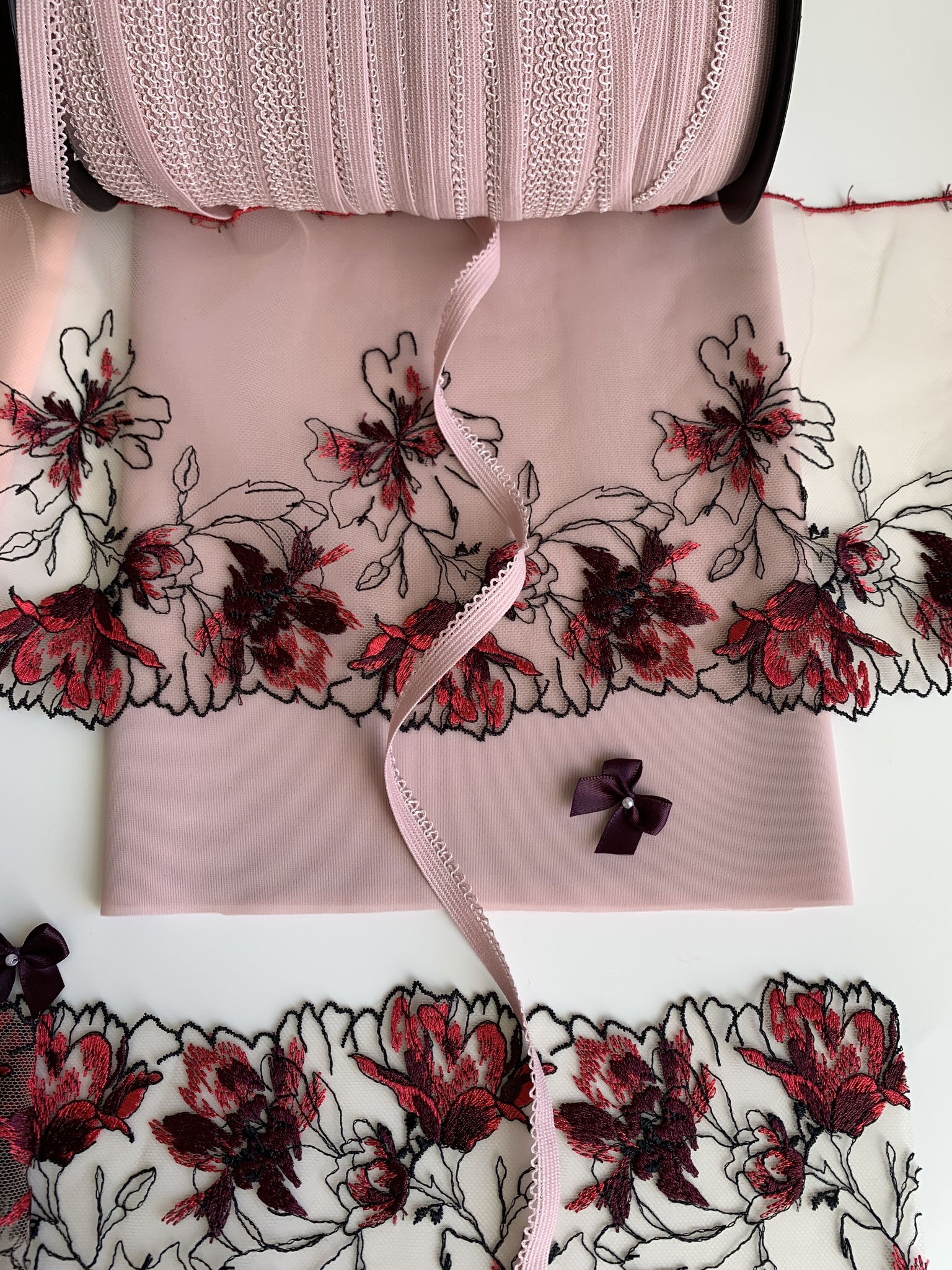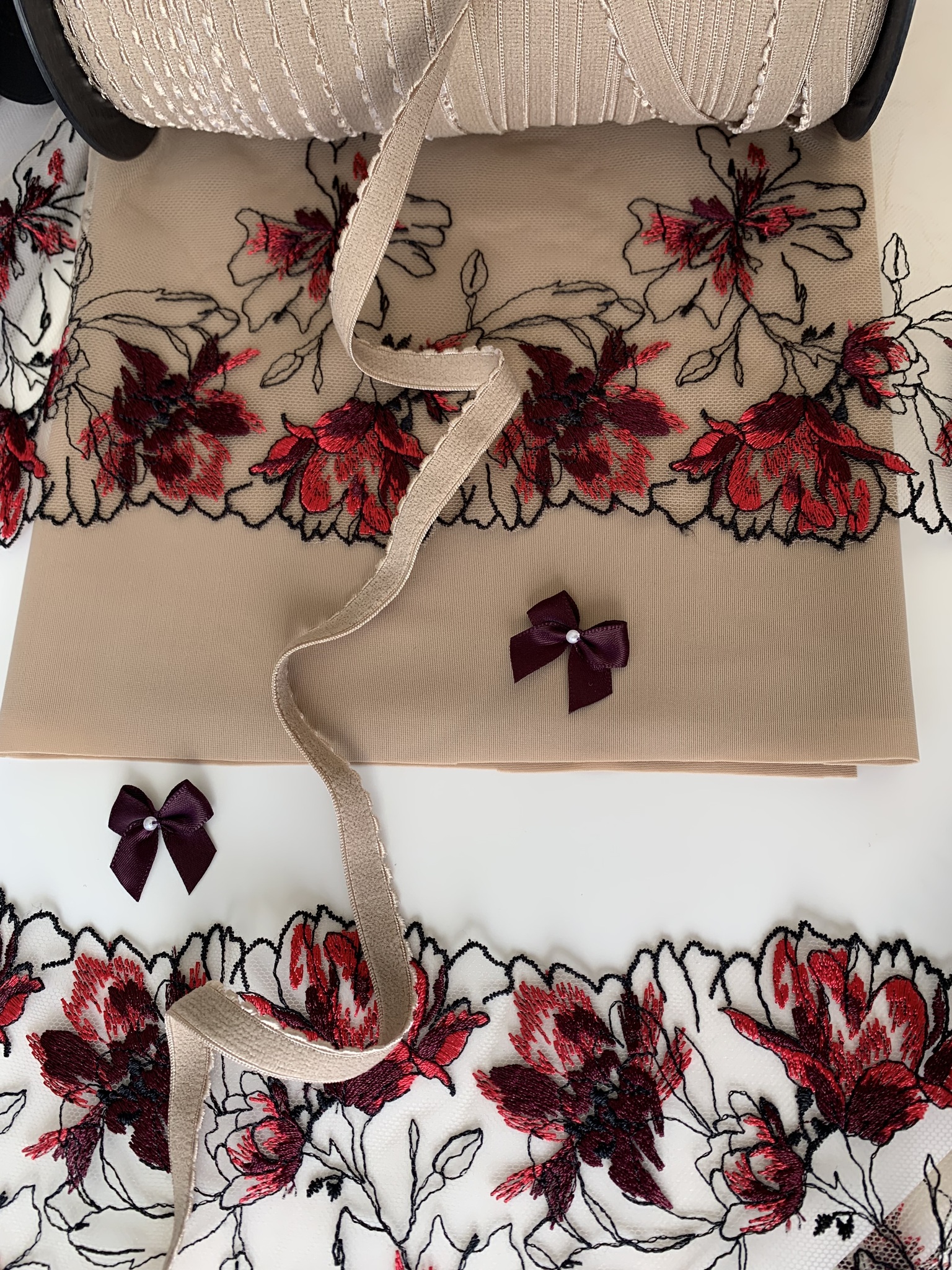 Вышивка неэластичная. Имеет левую и правую сторону (отличаются направлением рисунка).