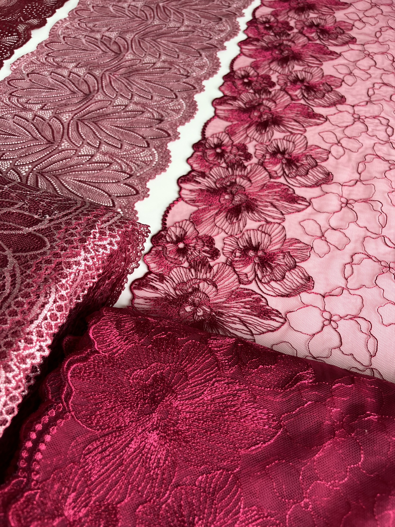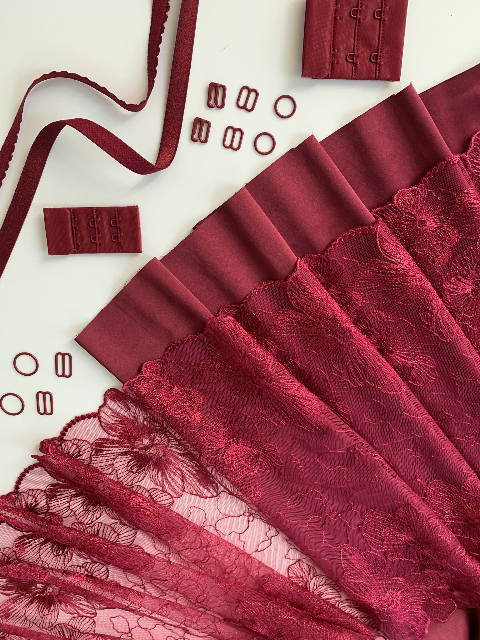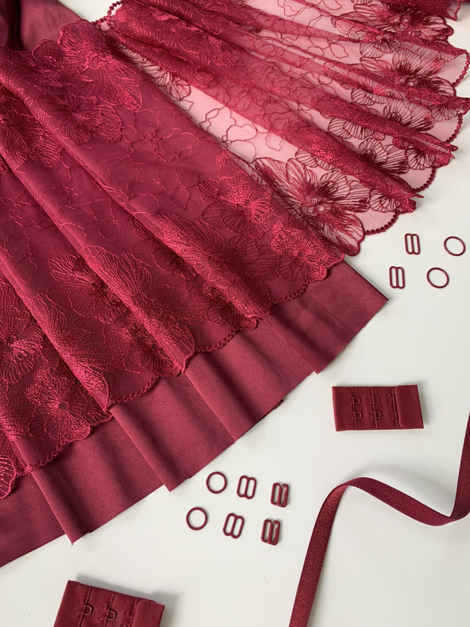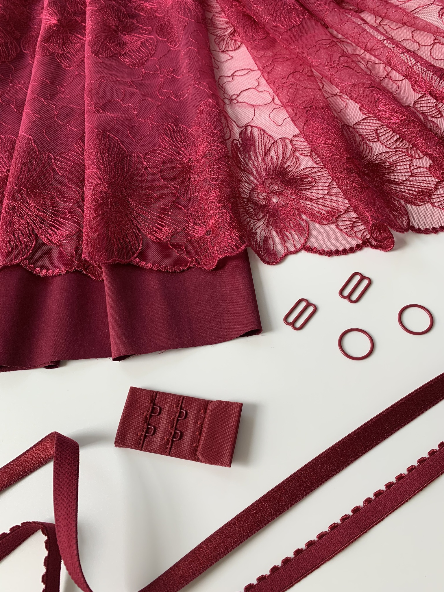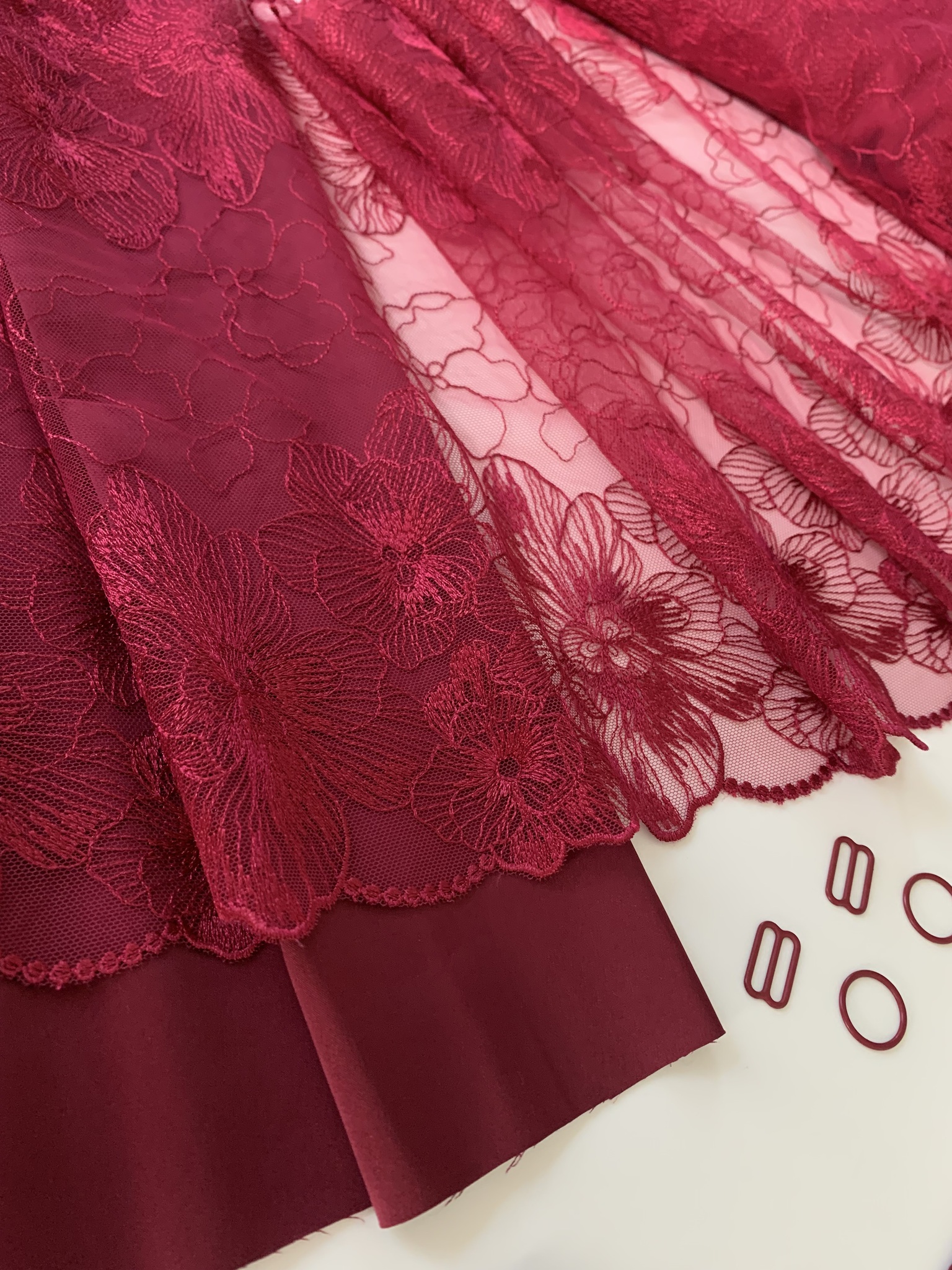 Вышивка неэластичная. Оттенок отличается от фурнитуры в цвете бордо.