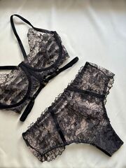 Вышивка на сетке черная/пудровая 25 см (ВС-033)