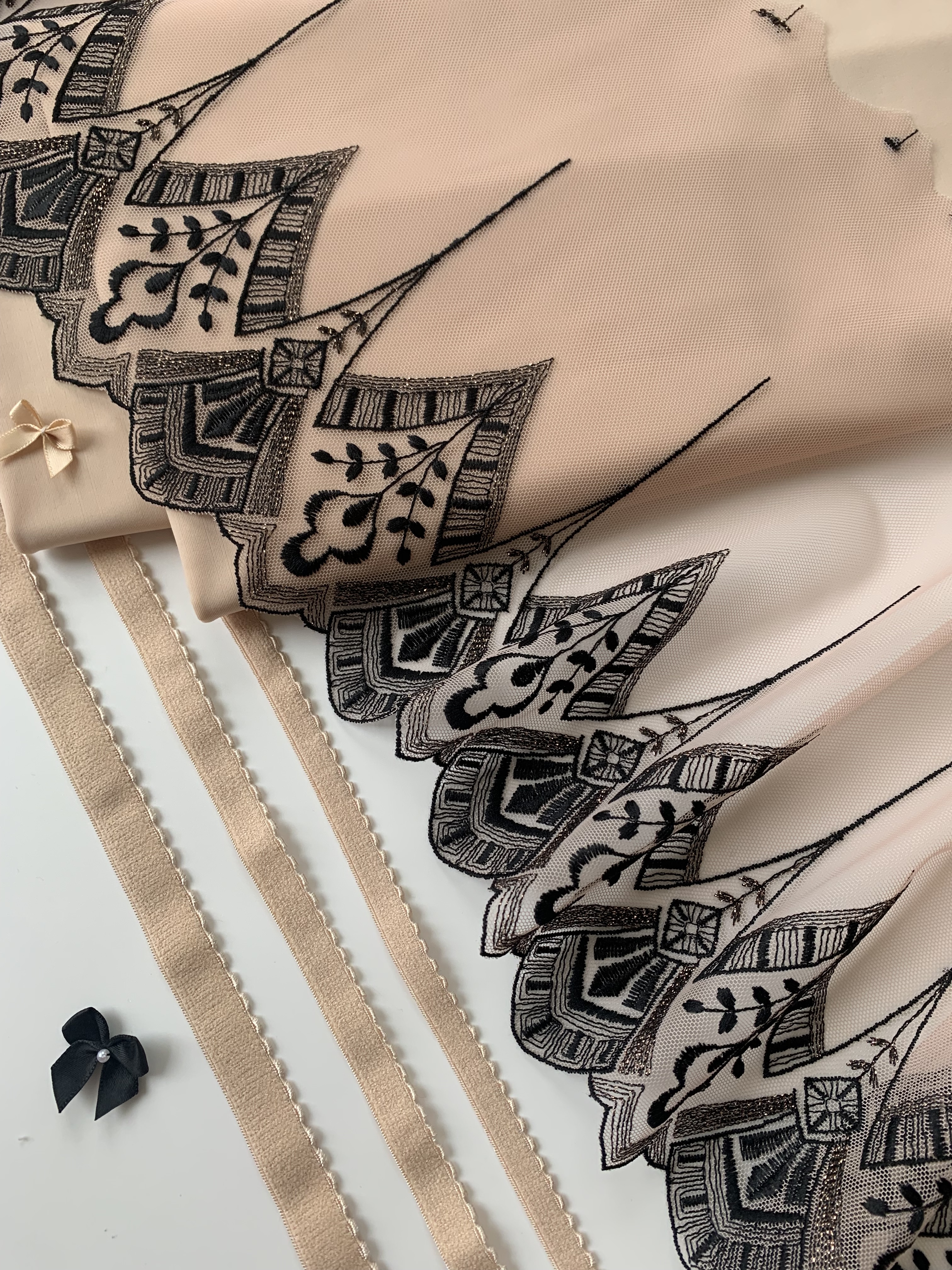 В вышивке возможно наличие стыков. Они не входят в заказанный метраж. Небольшое количество может быть добавлено к заказу для компенсации при раскрое.