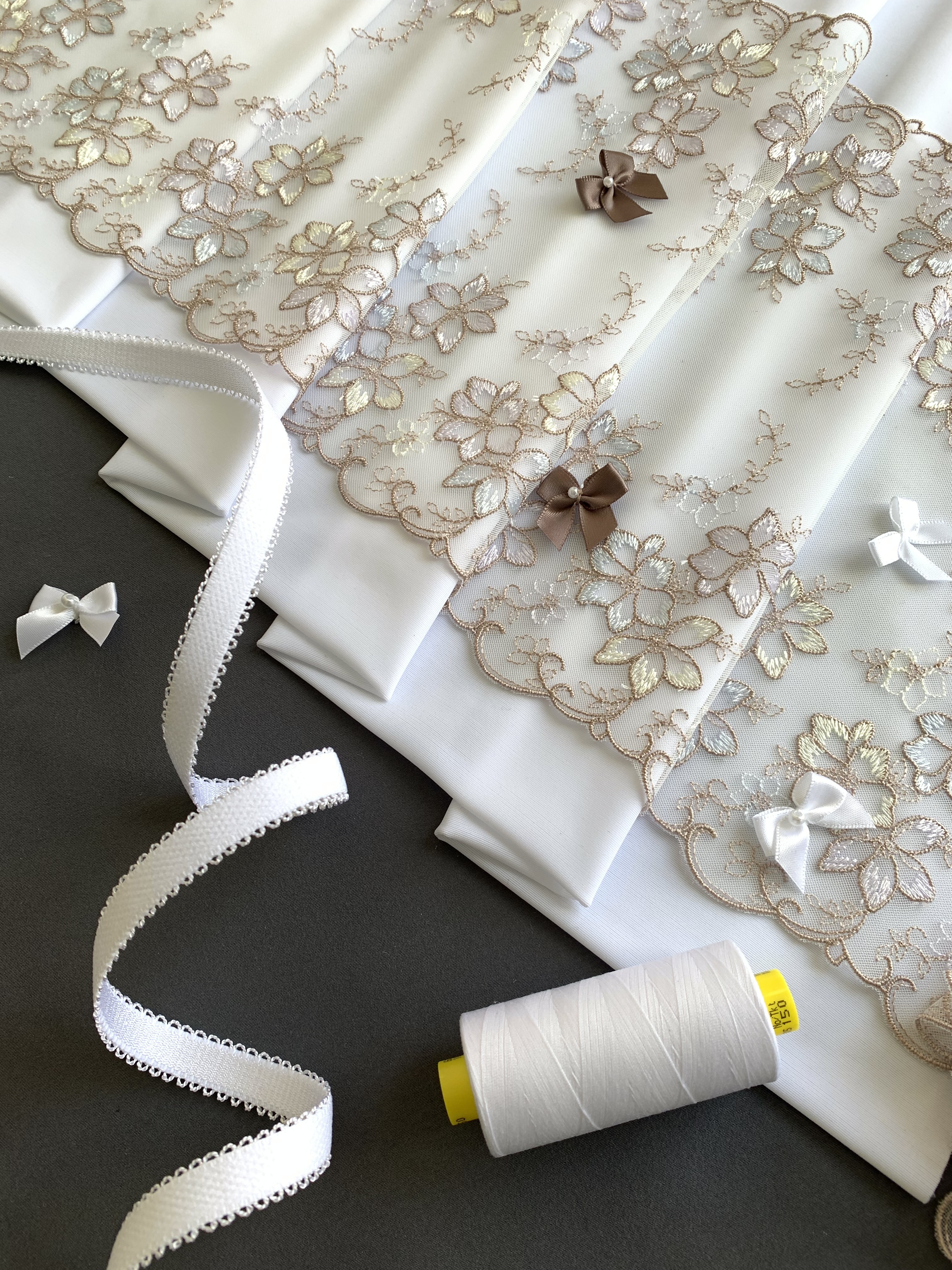 В вышивке возможно наличие стыков. Они не входят в заказанный метраж. Небольшое количество может быть добавлено к заказу для компенсации при раскрое.