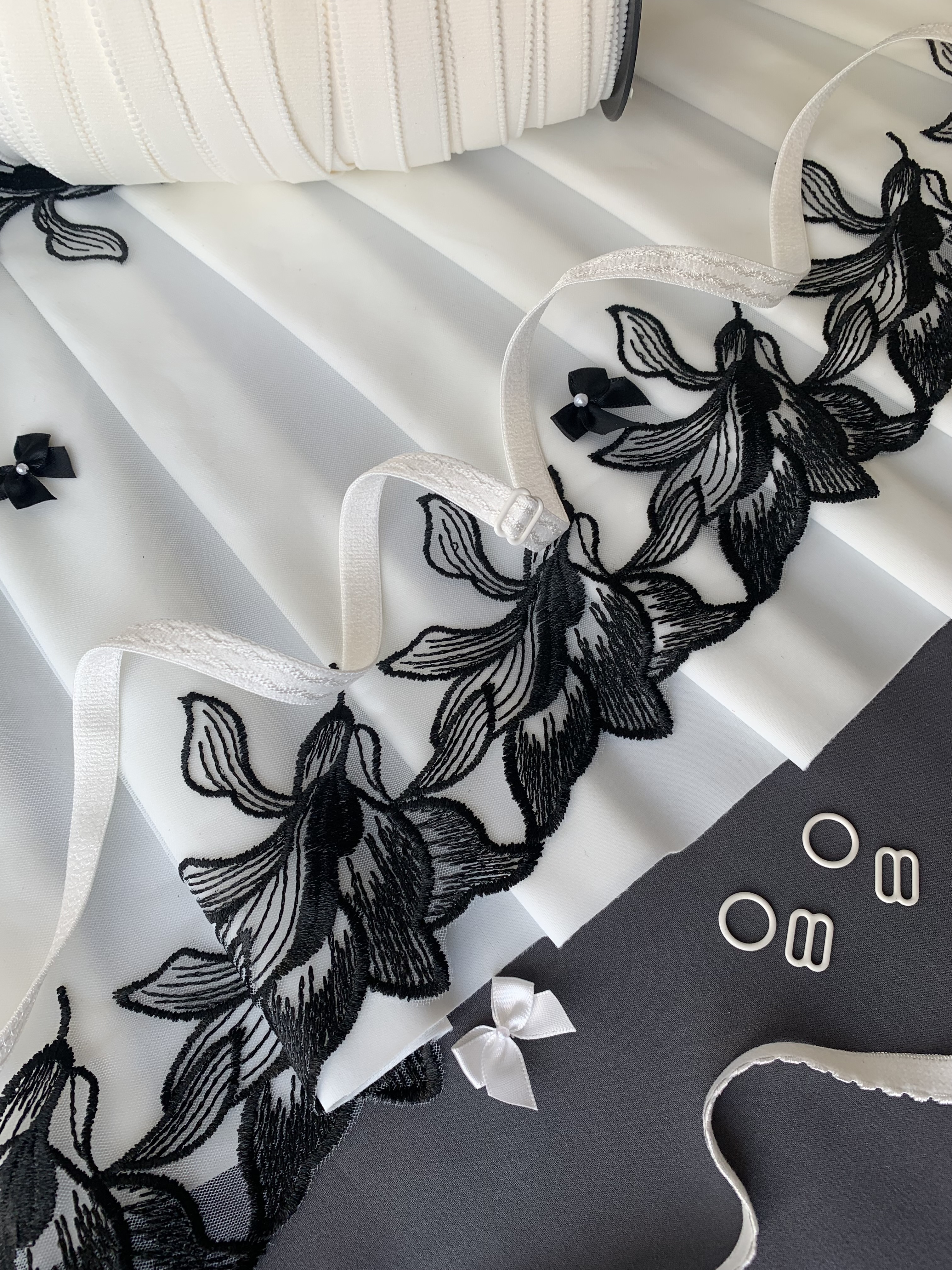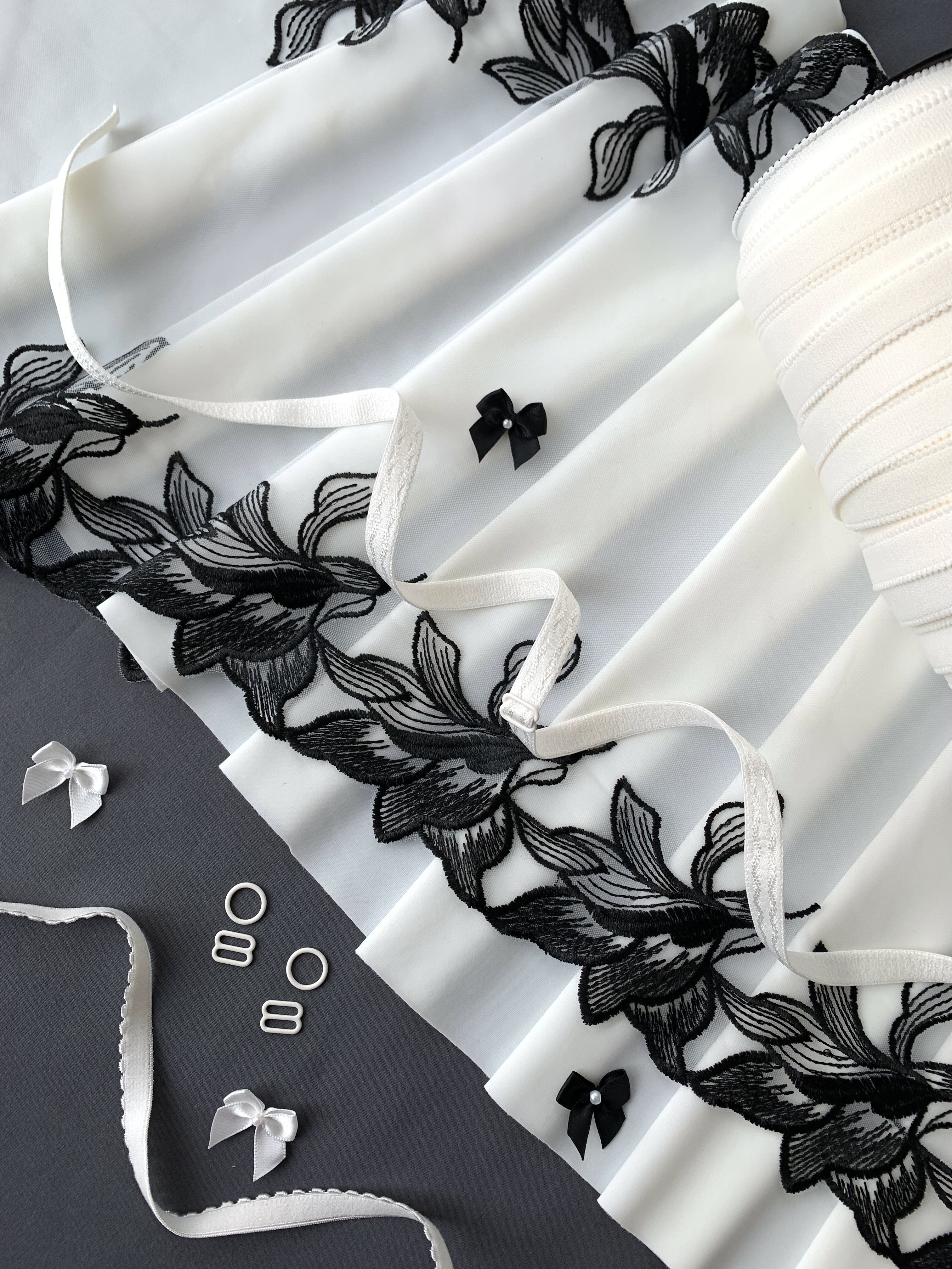 Вышивка на сетке молочная/черная 32 см (ВС-052)