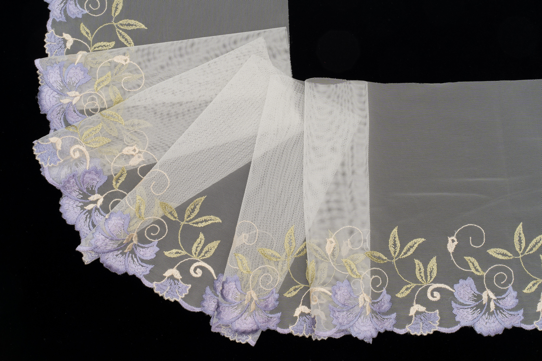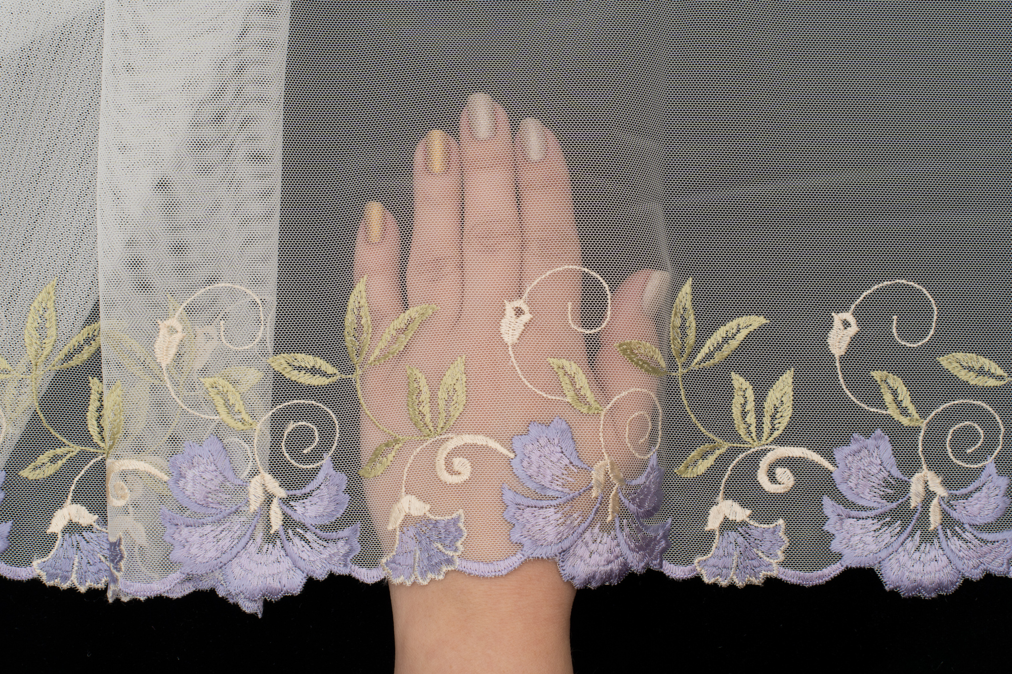 Вышивка неэластичная. Имеет левую и правую сторону (отличаются направлением рисунка).
