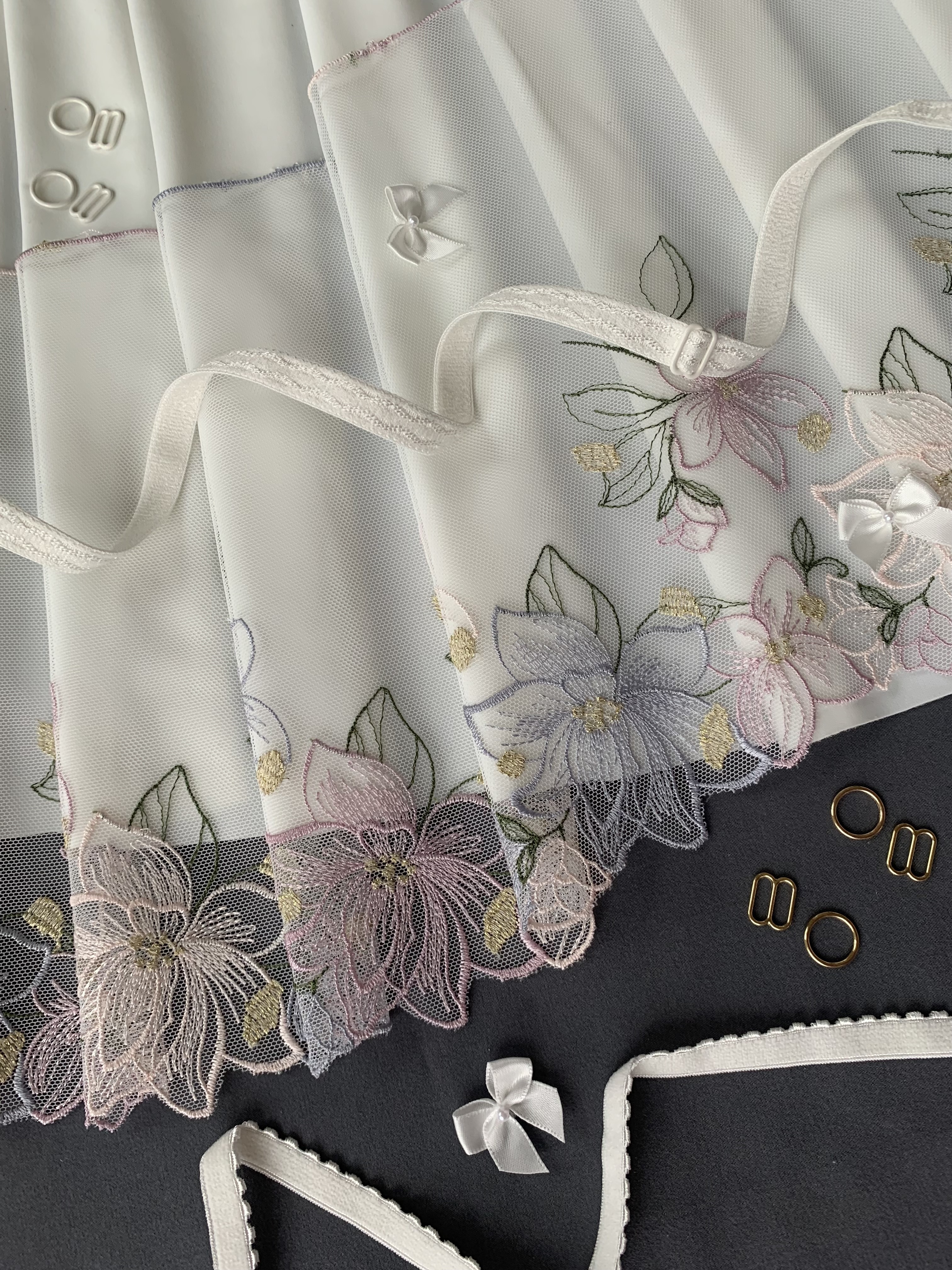 В вышивке возможно наличие стыков. Они не входят в заказанный метраж. Небольшое количество может быть добавлено к заказу для компенсации при раскрое.