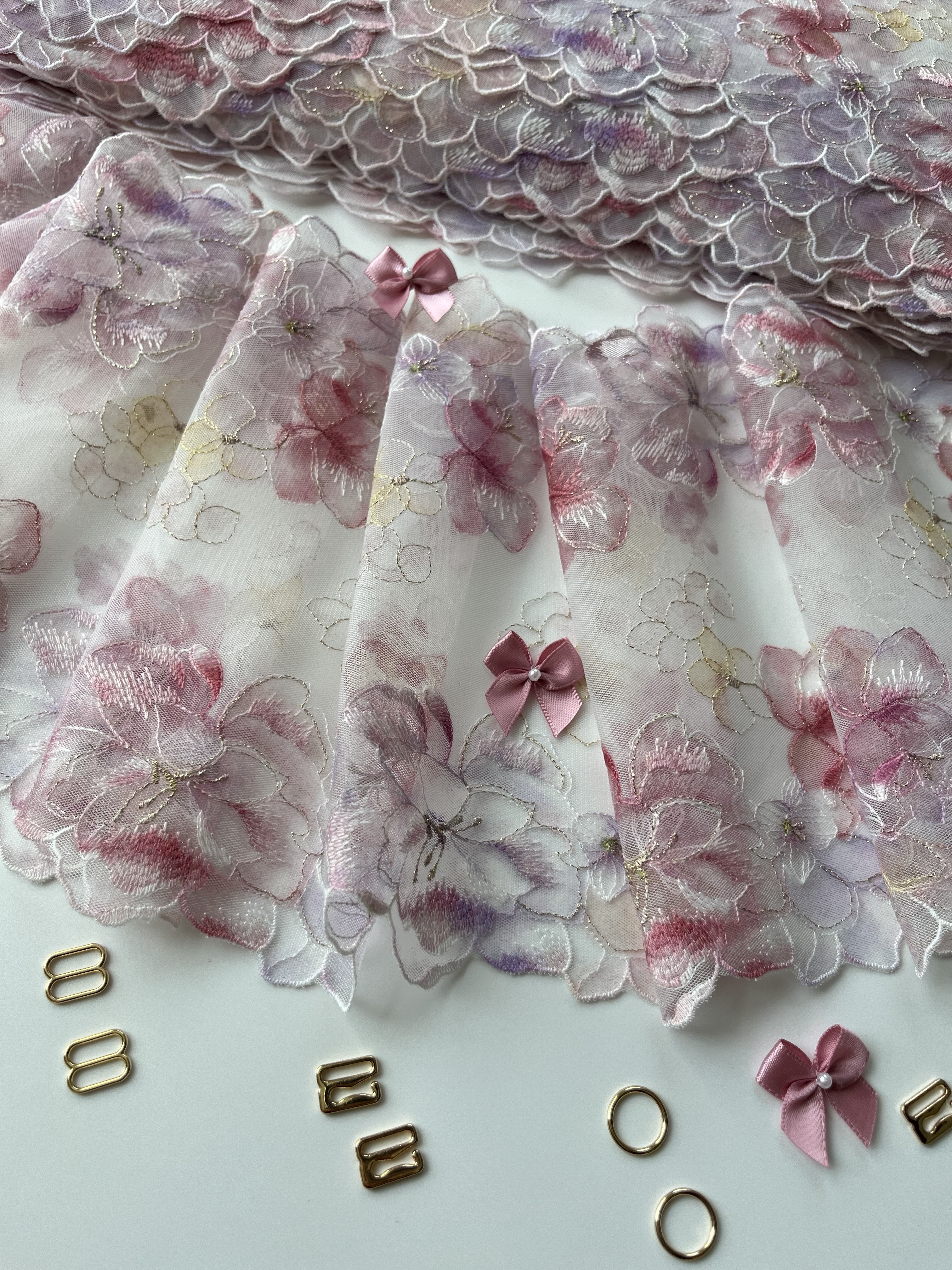 Вышивка неэластичная по ширине. По высоте растягивается. Есть золотая отделка.